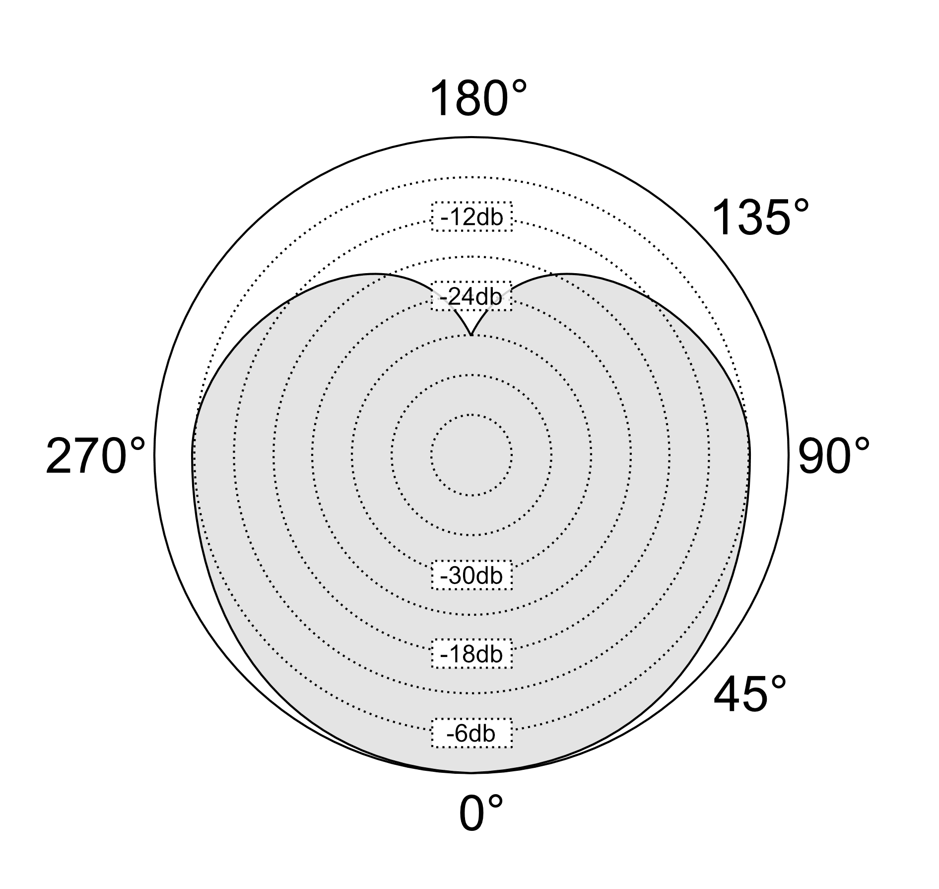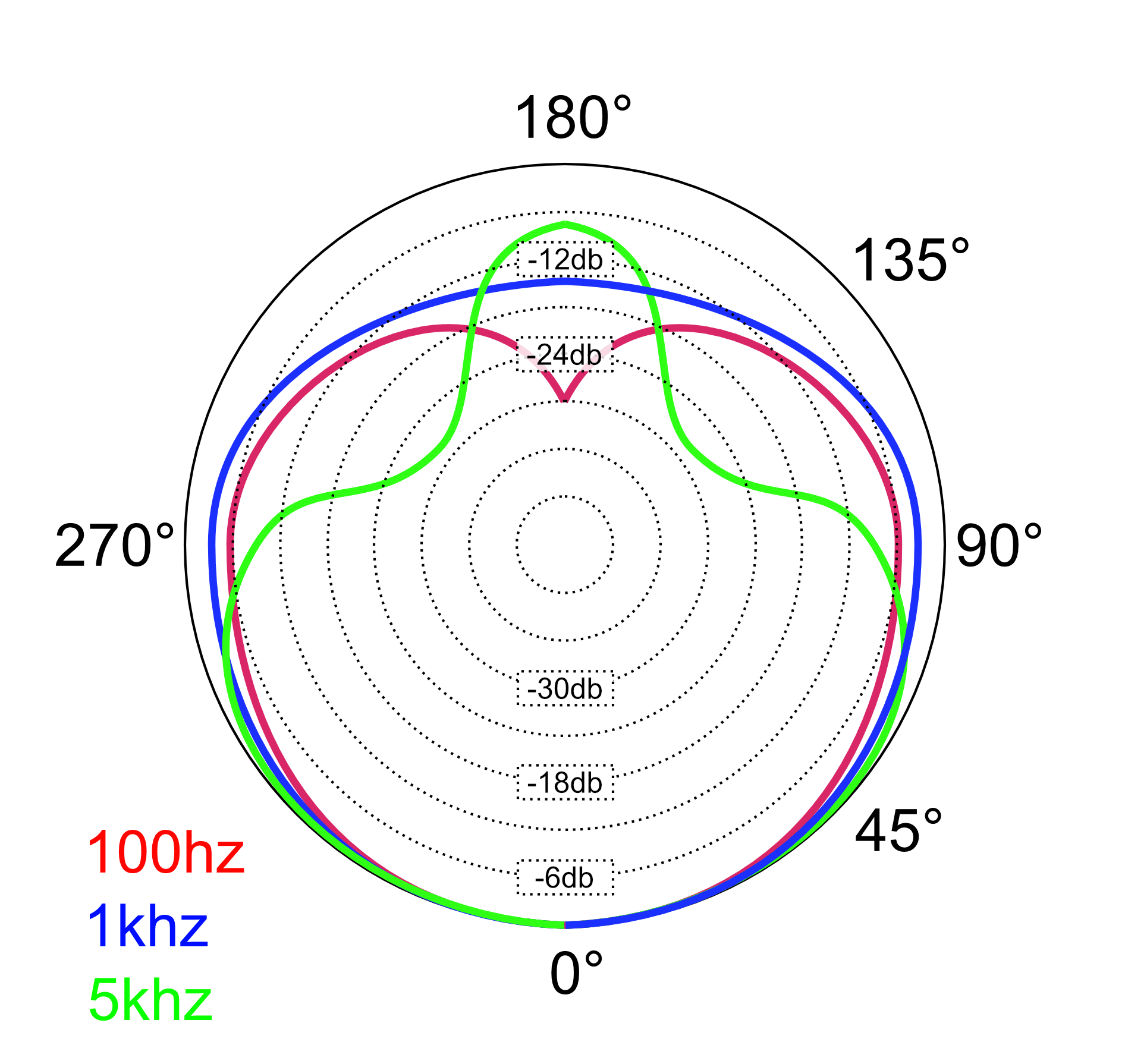 At 45° our sound is about -3db down. At 135° we're about -12db down.