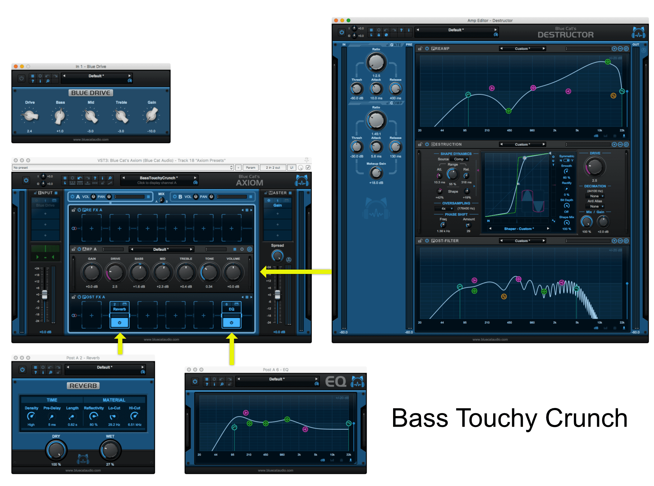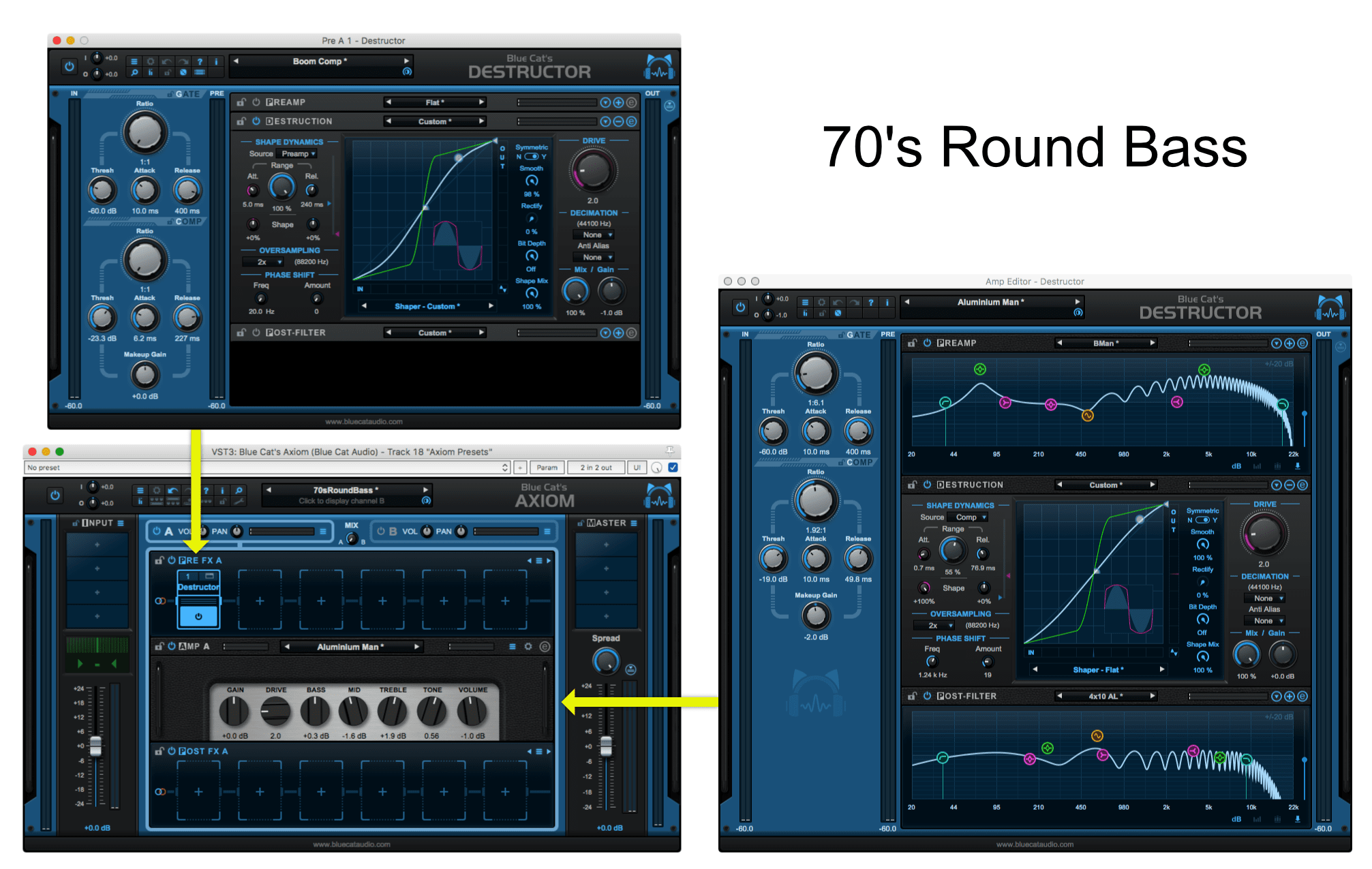 First, you must understand the concept of gain staging. Axiom and Destructor are non-linear processors at their heart. This means that if the input levels are not similar to what the preset designer used, then you won't hear what the preset designer used.