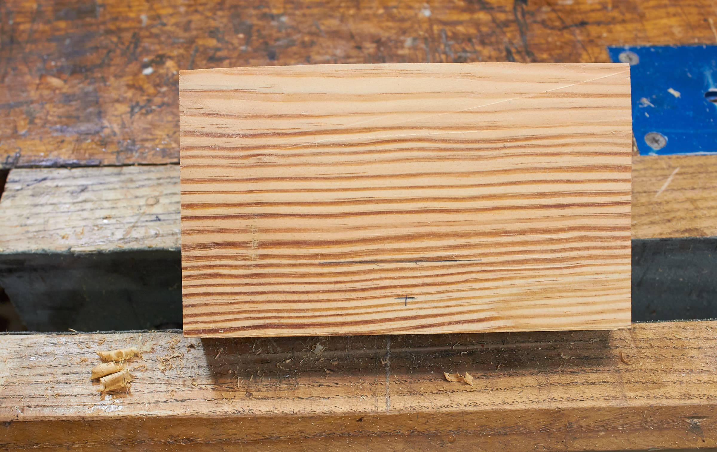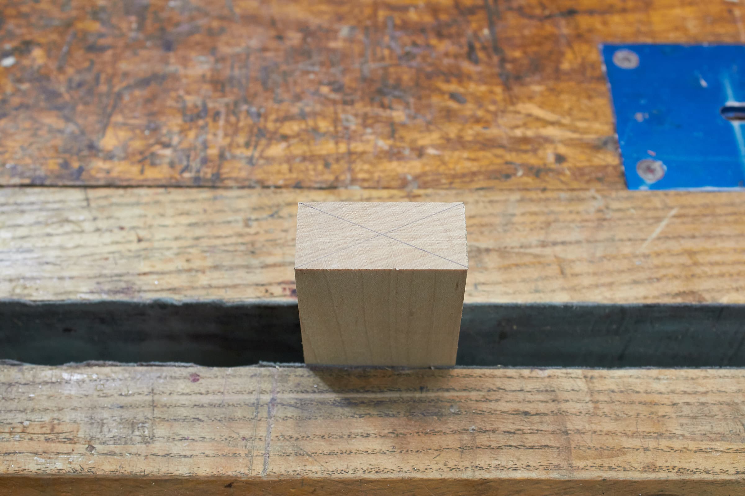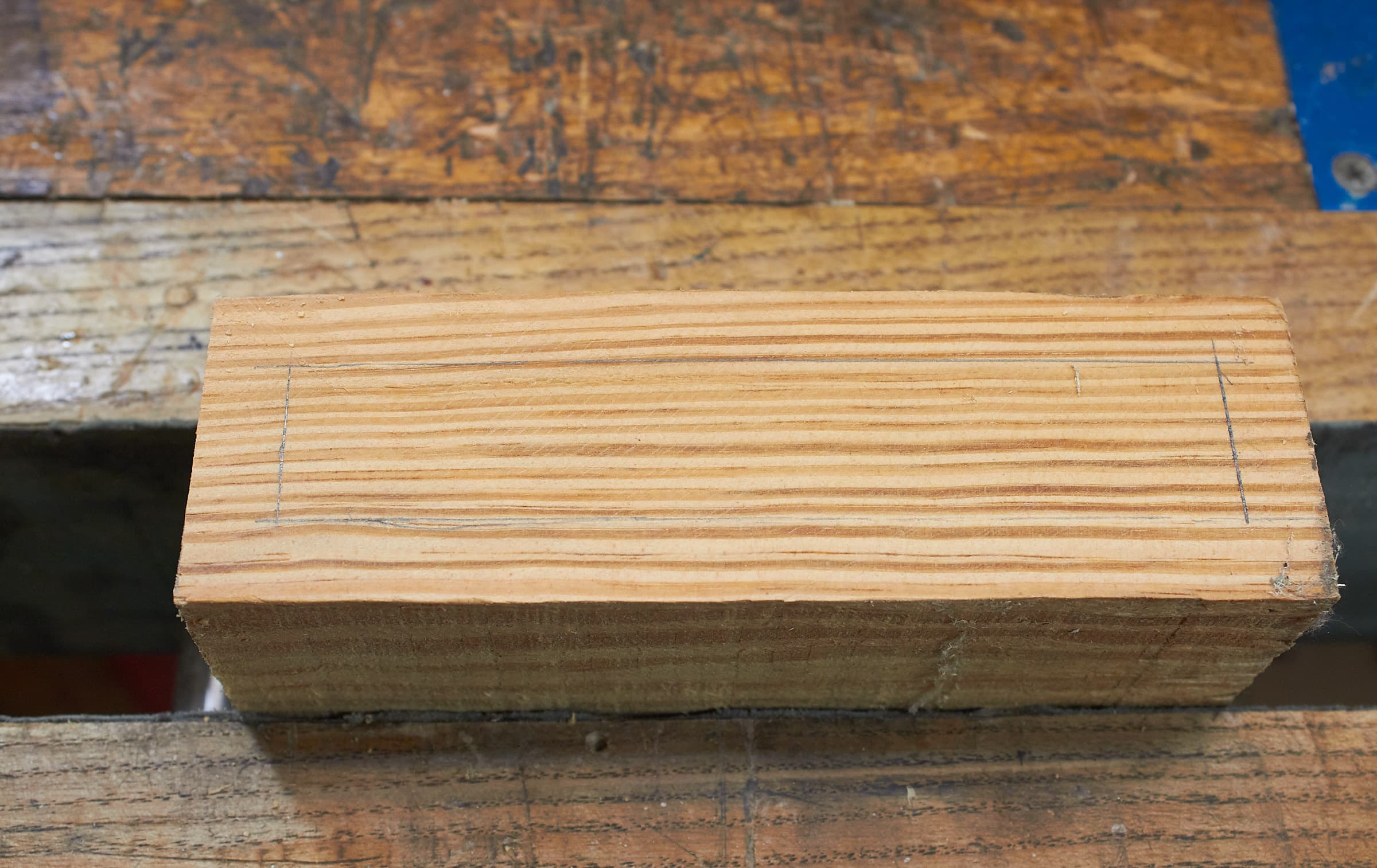 What we're going to do is create what's called a Mortise. So mark a square inside your block, with the grain oriented as shown.