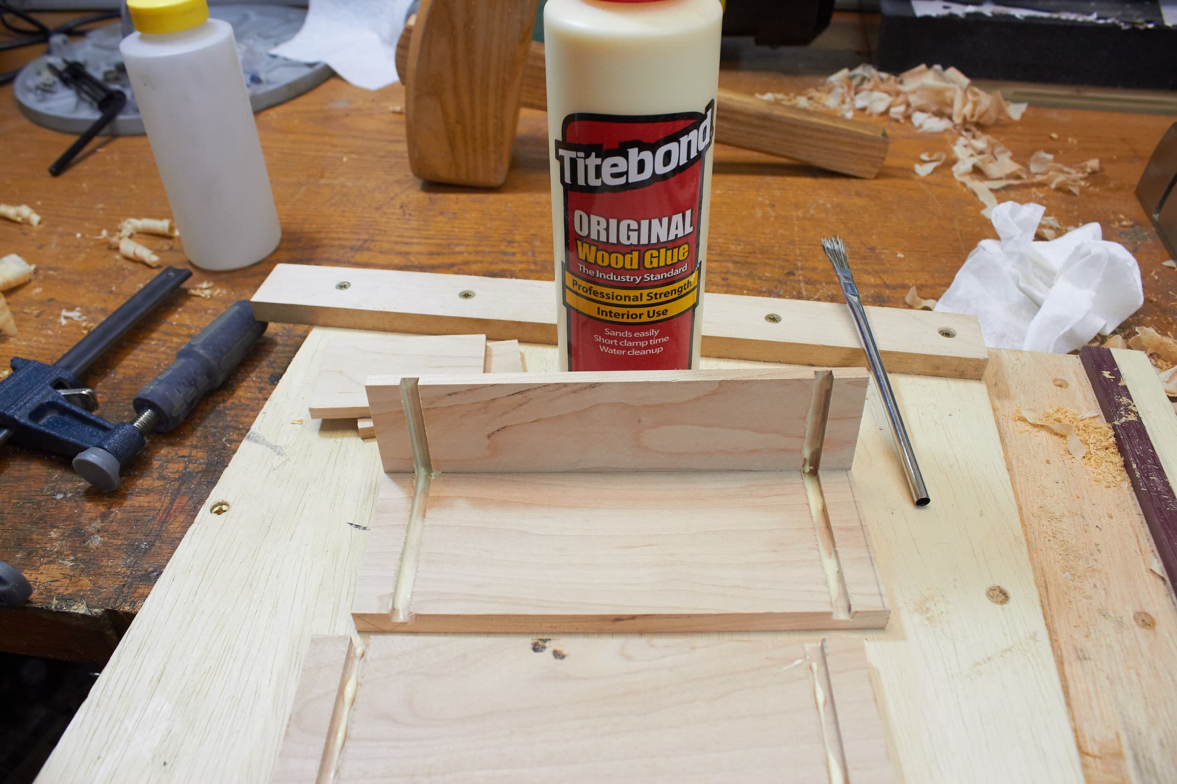 Now I glue it with some wood glue. Any wood glue will do, but I'm using Titebond Original