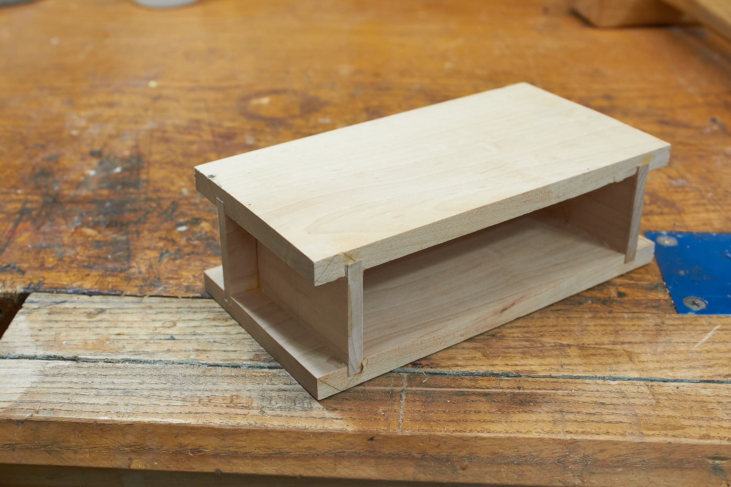 My inner box is about 1/2"(1.25cm) from the edges. The thinner the faces, the deeper the sound of the wood block.
