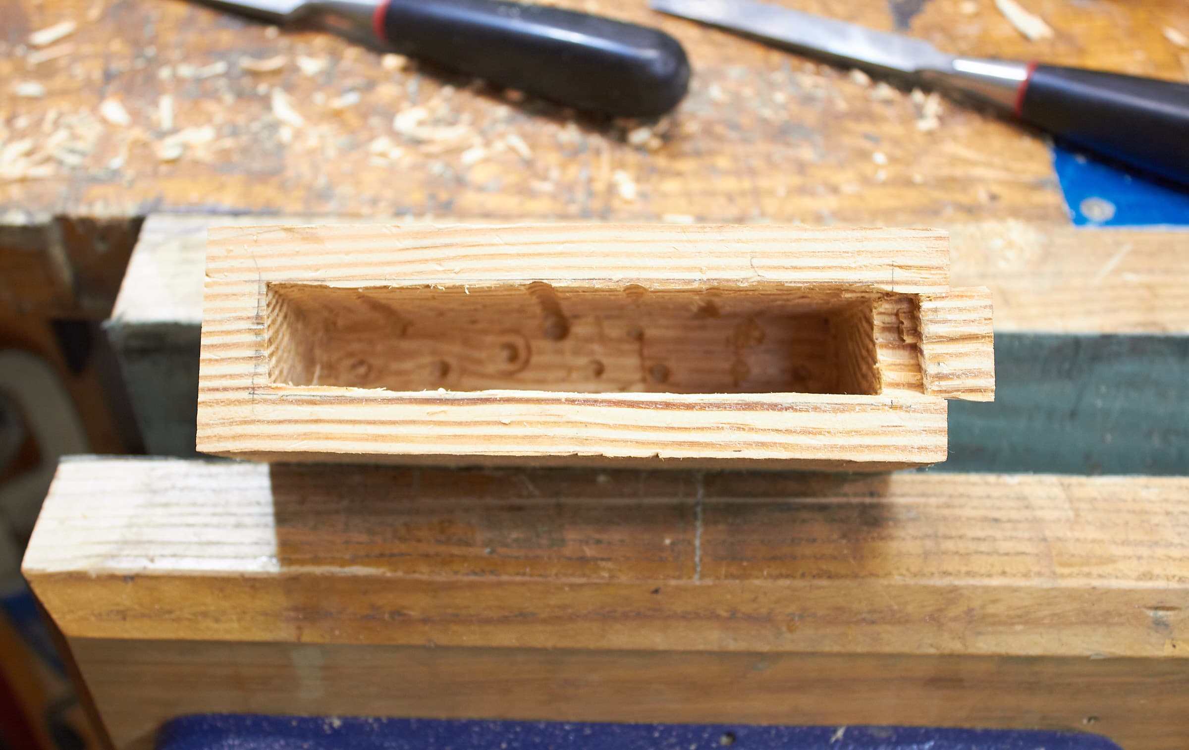 I want a mortise here so that the holder will have a nice squared place to seat. This will help stop it from spinning when hit hard.