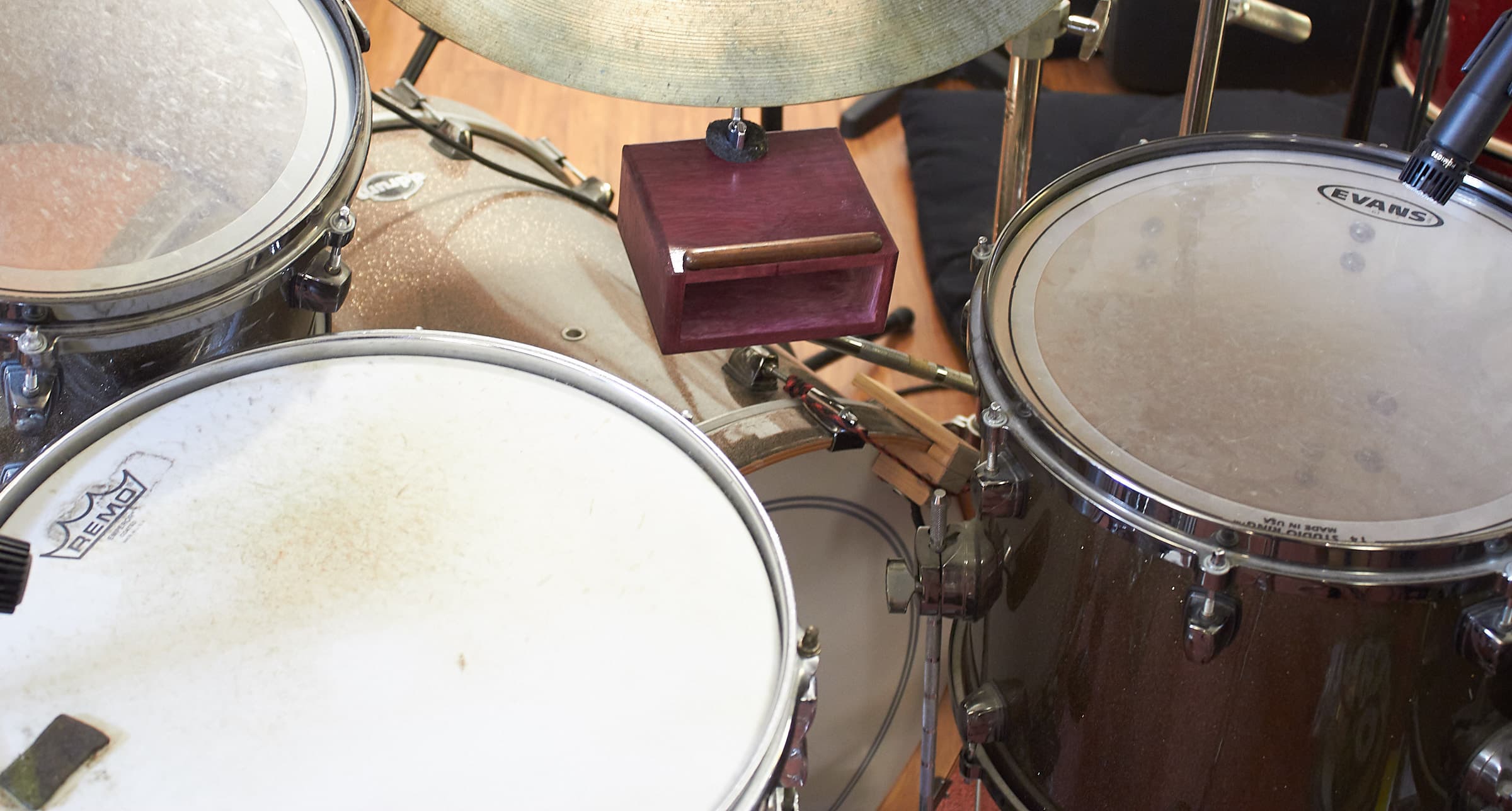 The design I'm using was created through testing various shapes/styles of wood blocks until I found something that I felt was at home on a full sized drum kit.