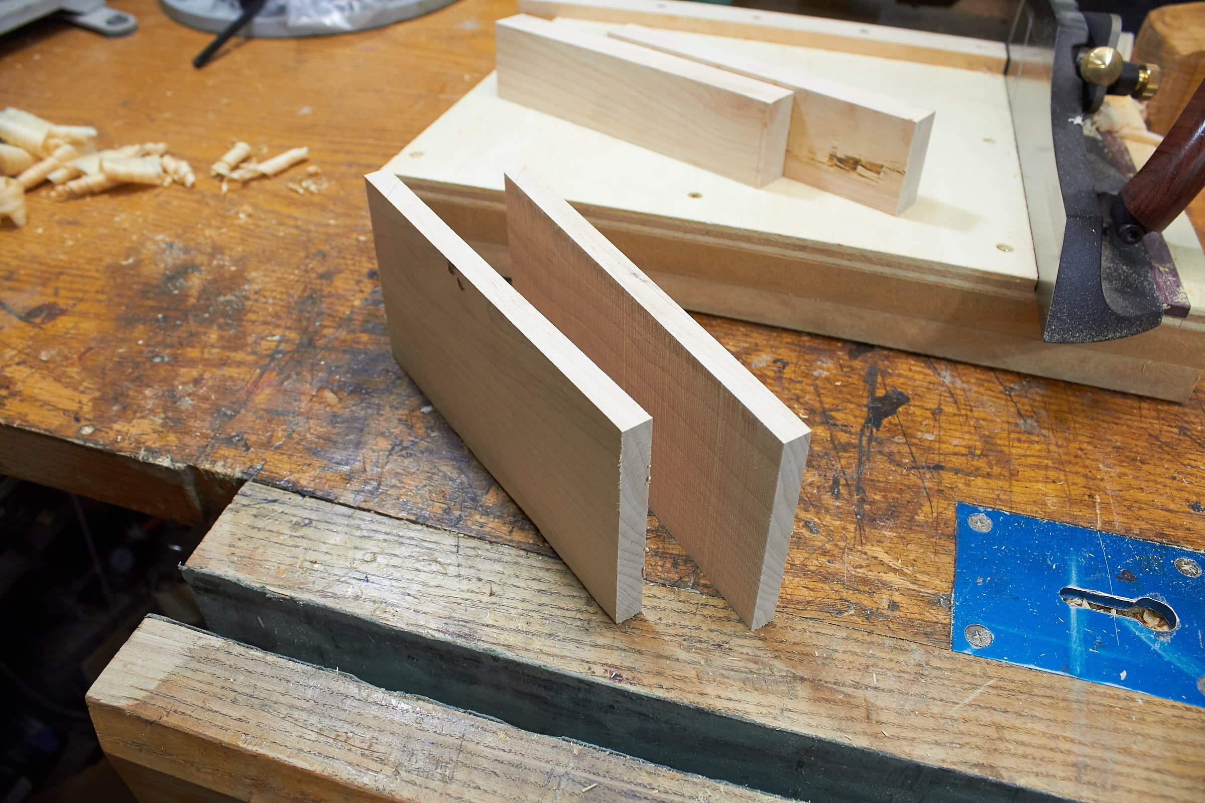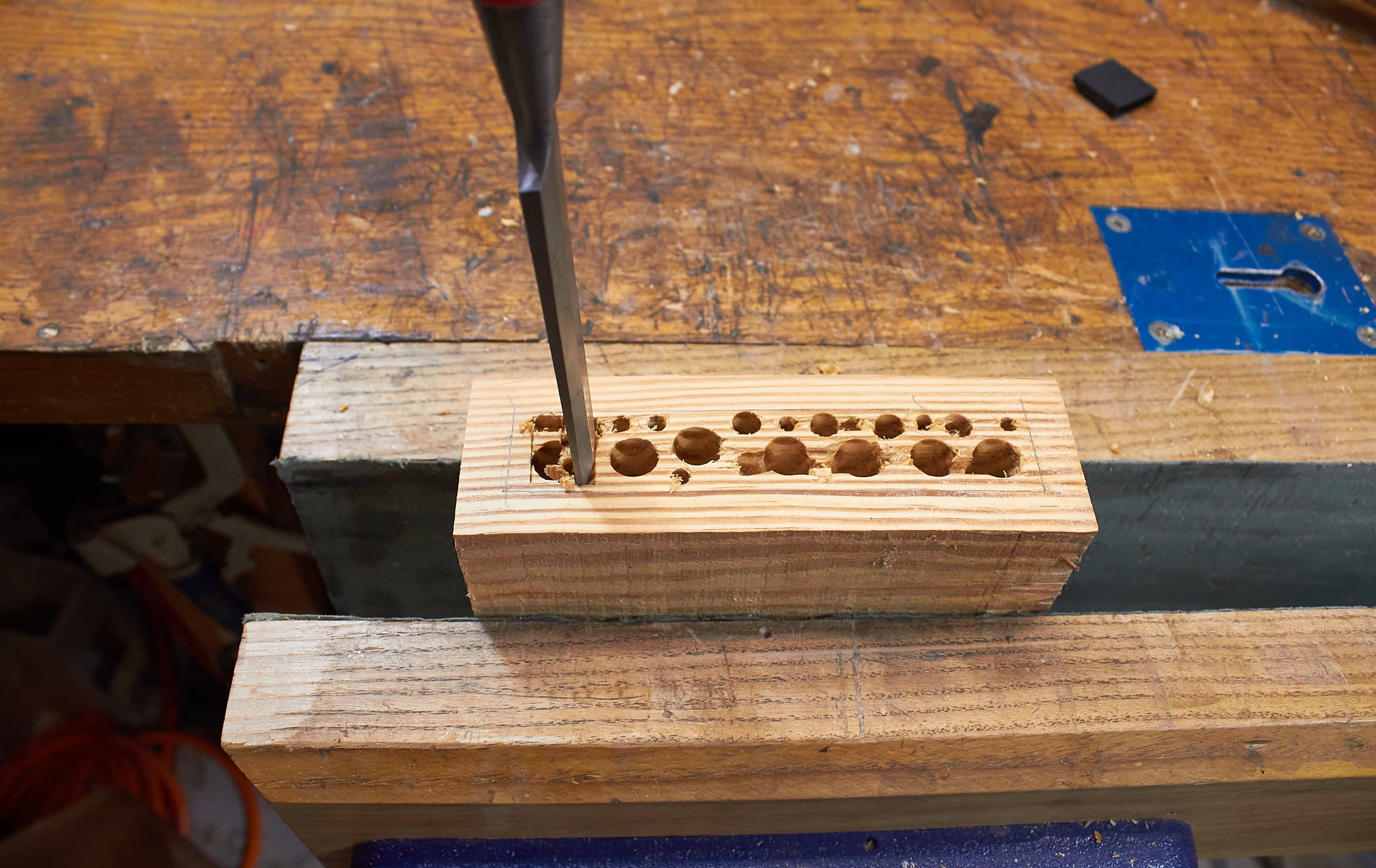 Here's the fun part. I remove the waste with a chisel, chopping perpendicular to the grain and moving in the direction of the bevel.