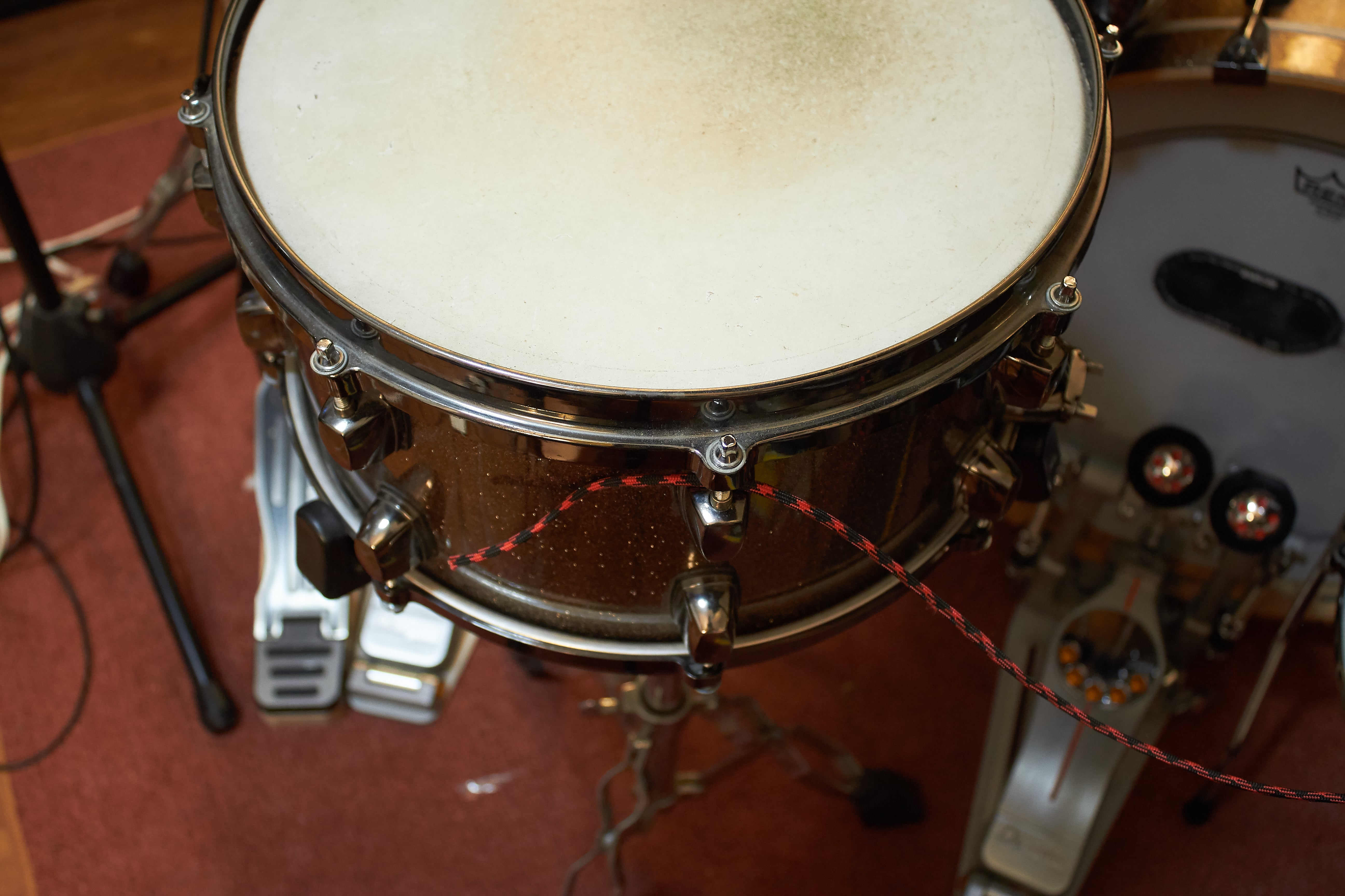 Don't be afraid of moving drums around while setting this up. Toms can get in the way, so don't be afraid of moving them to the side.