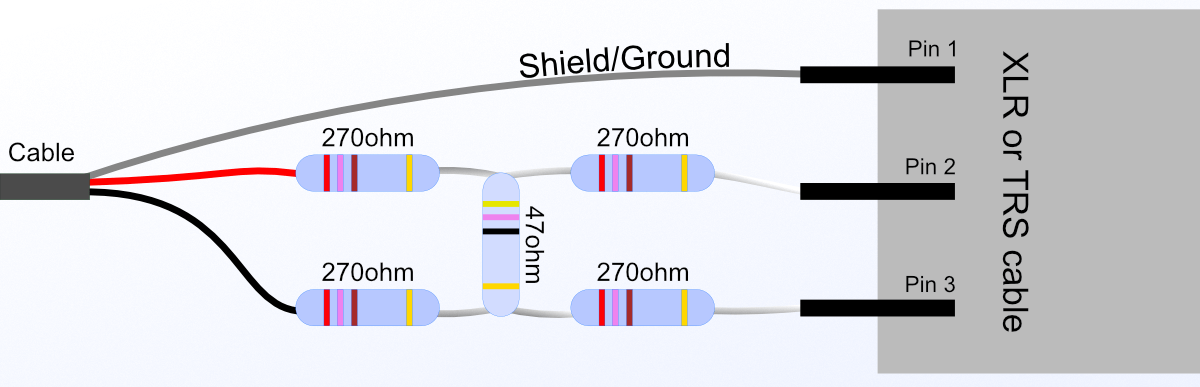 • I will be using an H-pad with 4 resistors of 270Ω and a single 47Ω resistor.