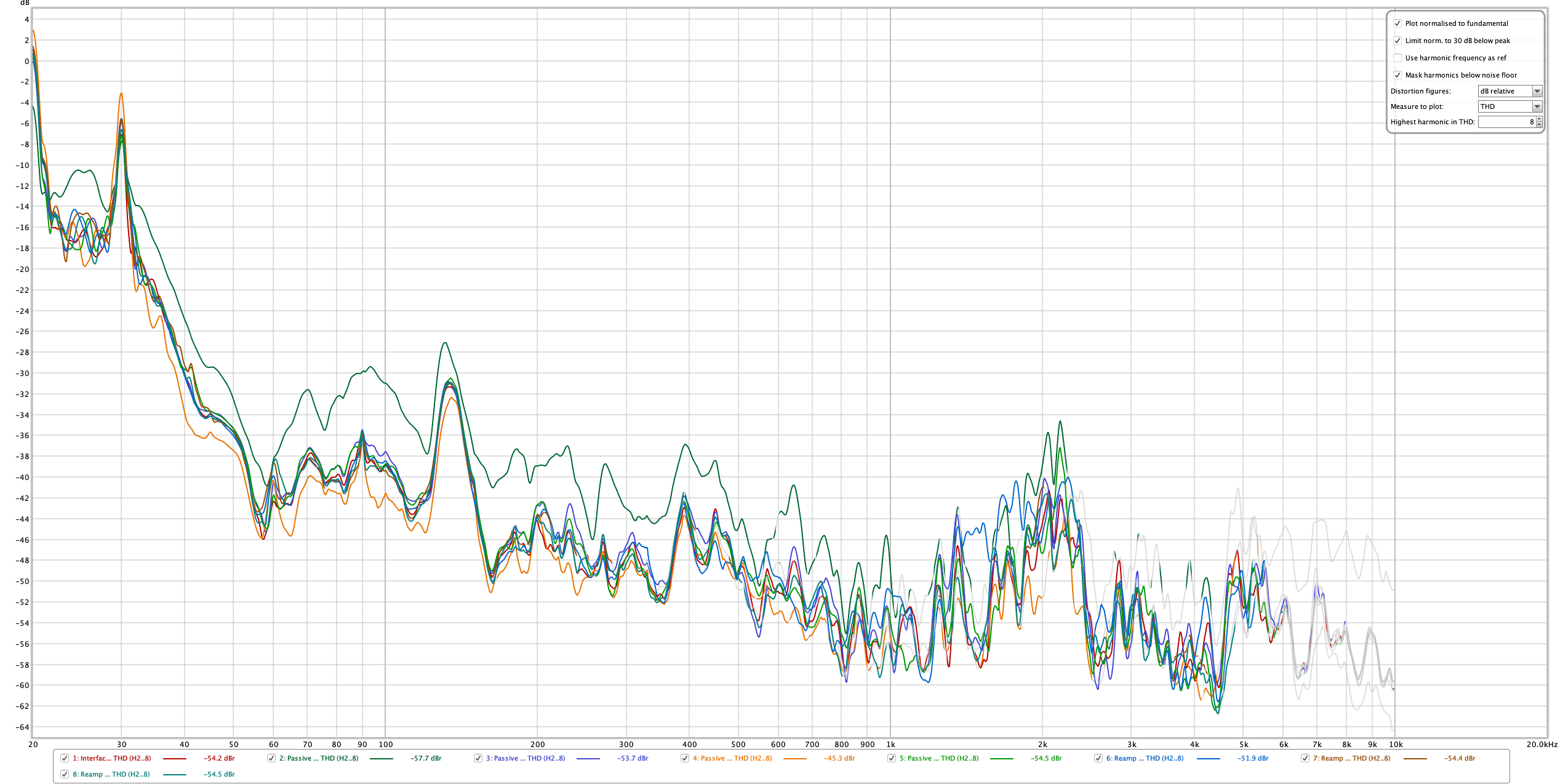 The H-Pad acts pretty oddly in all of these tests, but the differences are still relatively minor. 4.5dB is certainly a large change, but in my experience very few people can hear a 4.5dB 4th harmonic change in a complex signal. (I did check! Nobody could hear the difference.)