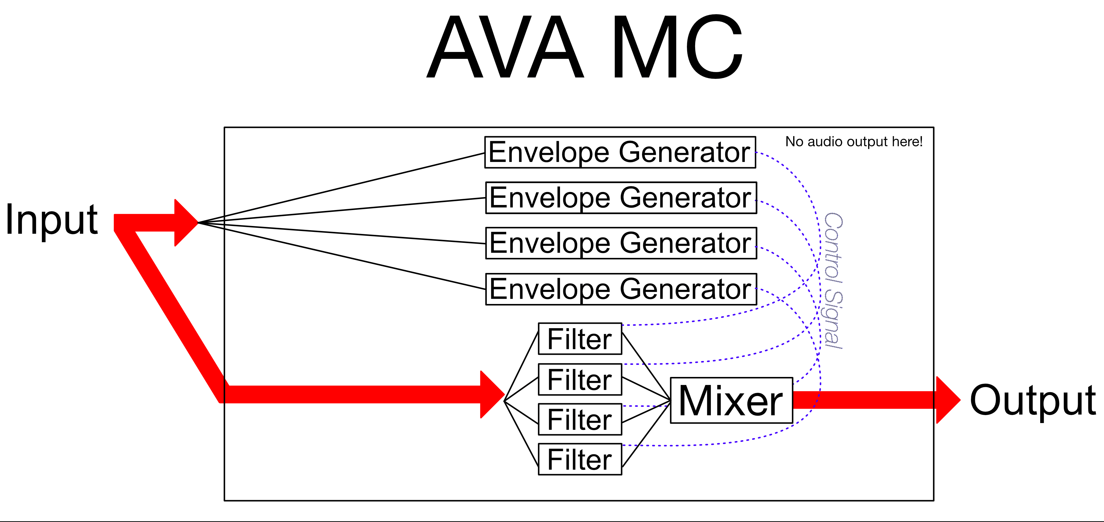 It seems from this cursory look that AVA MC feeds the signal to an envelope detector/generator, then manipulates the gain of filters in the signal path using that envelope. This method is generally called a dynamic equalizer (not a multiband compressor!).