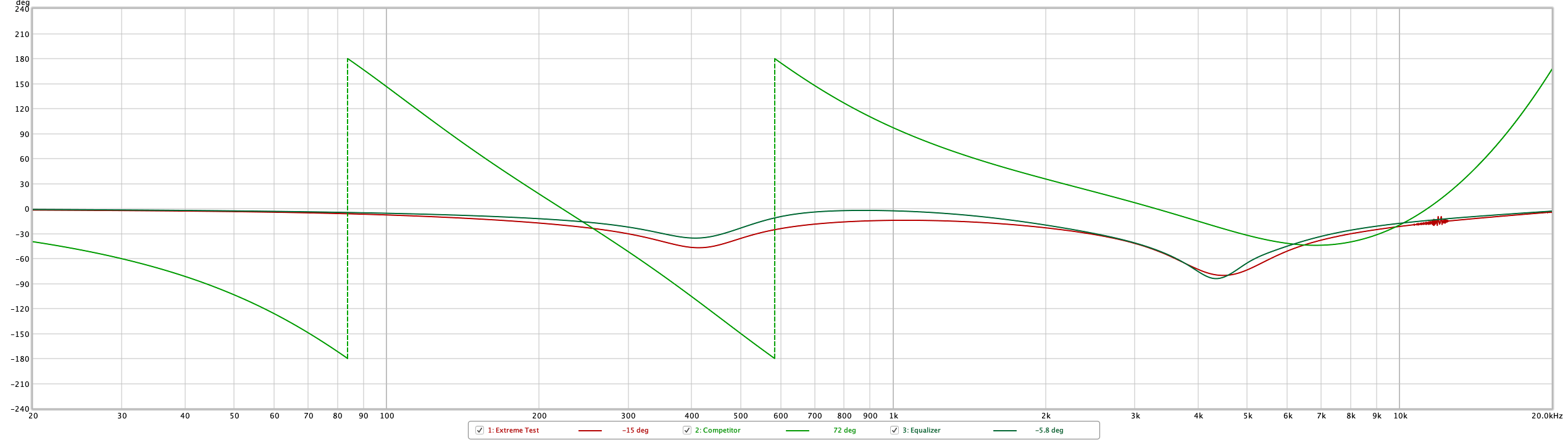 Even with some fairly extreme processing, the phase response of the product is consistently clean. In fact, it looks an awful lot like a minimum phase equalizer...