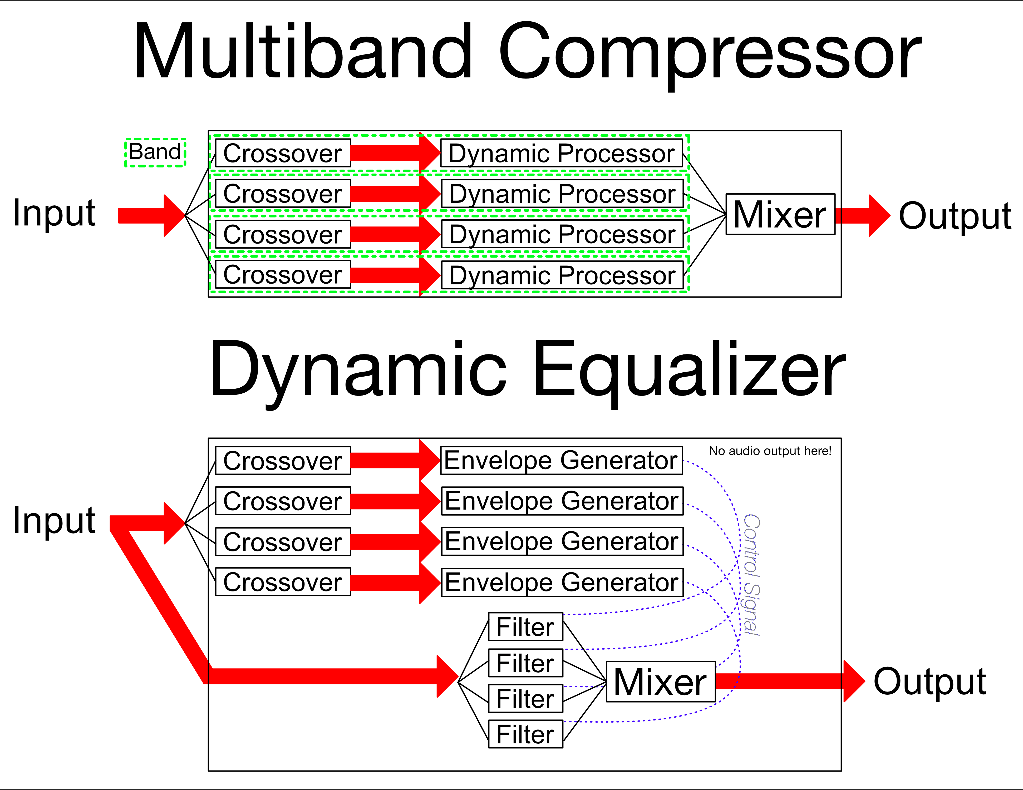 Multiband Compressor vs Dynamic Equalizer (Click for larger image)