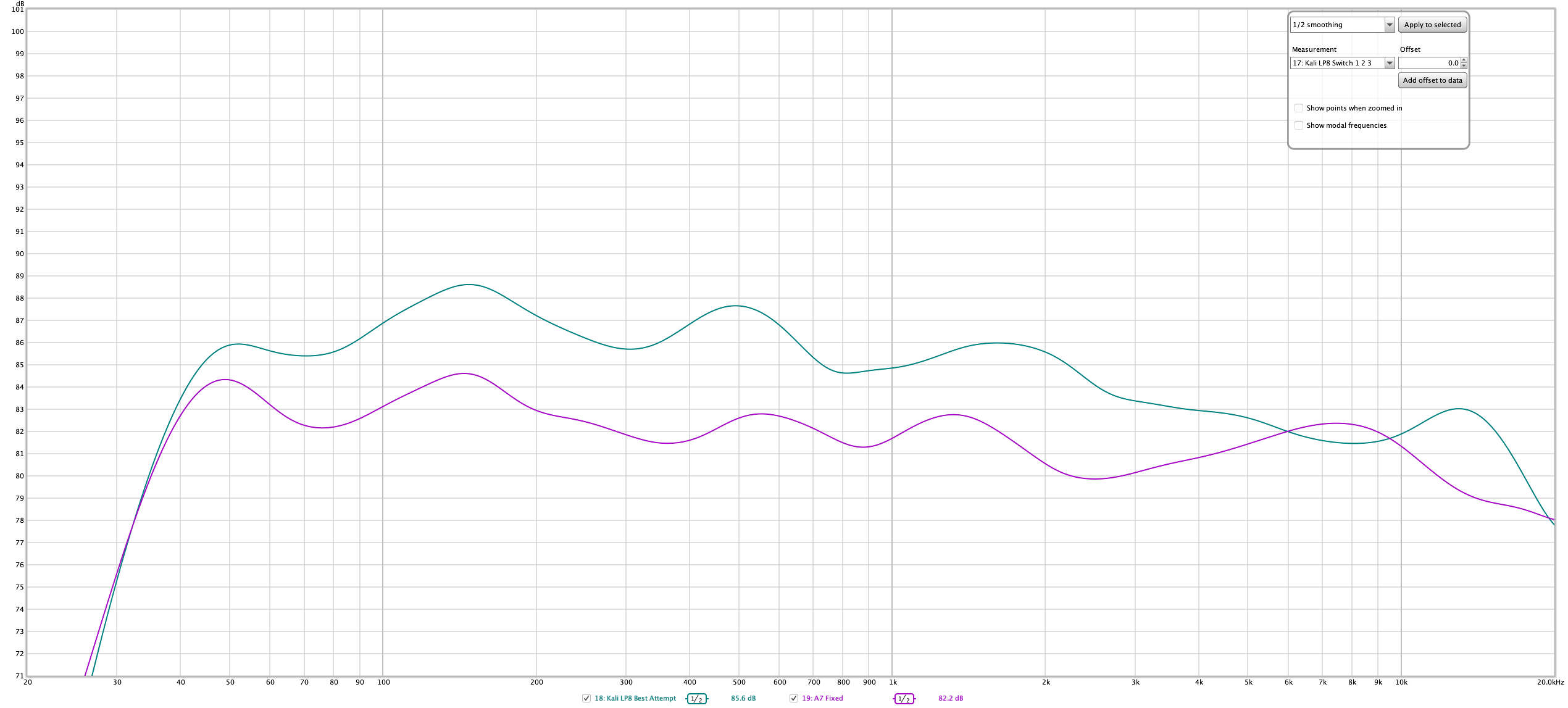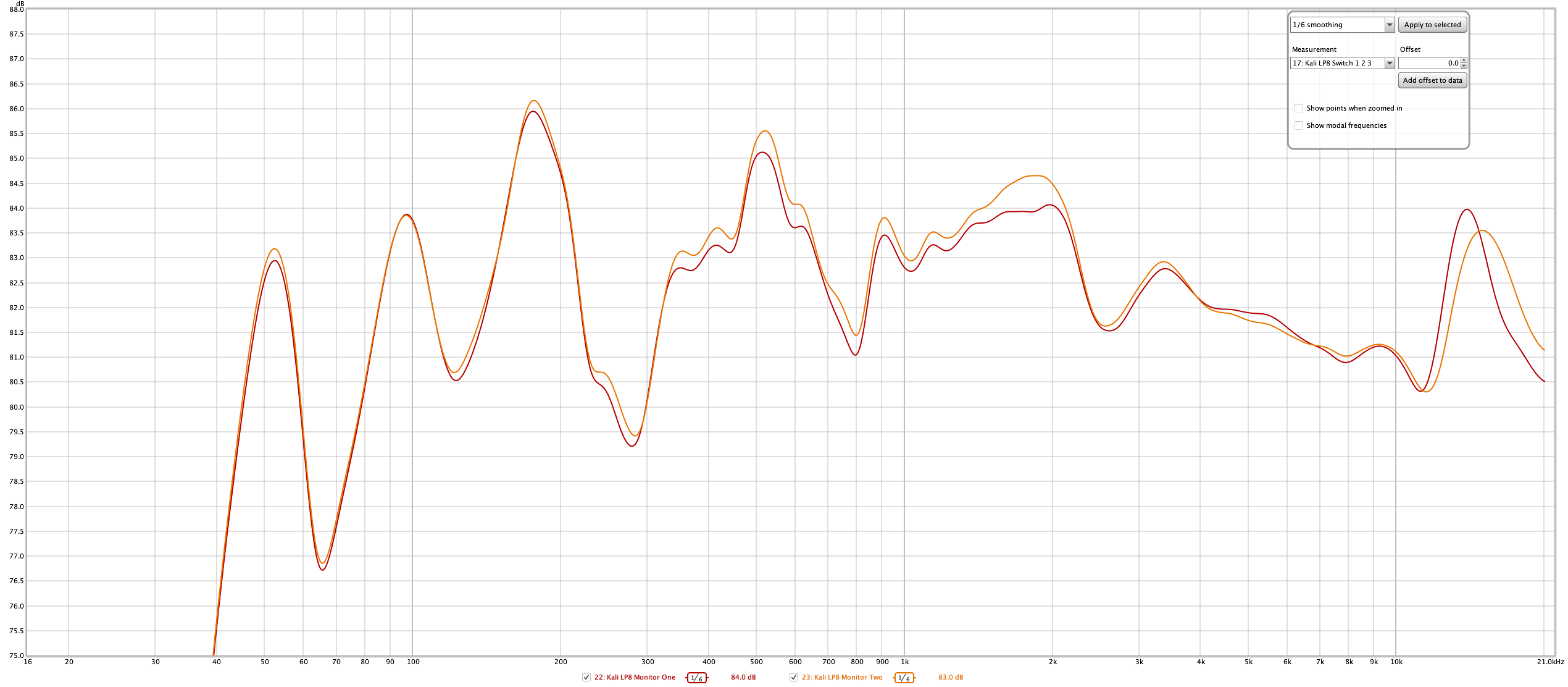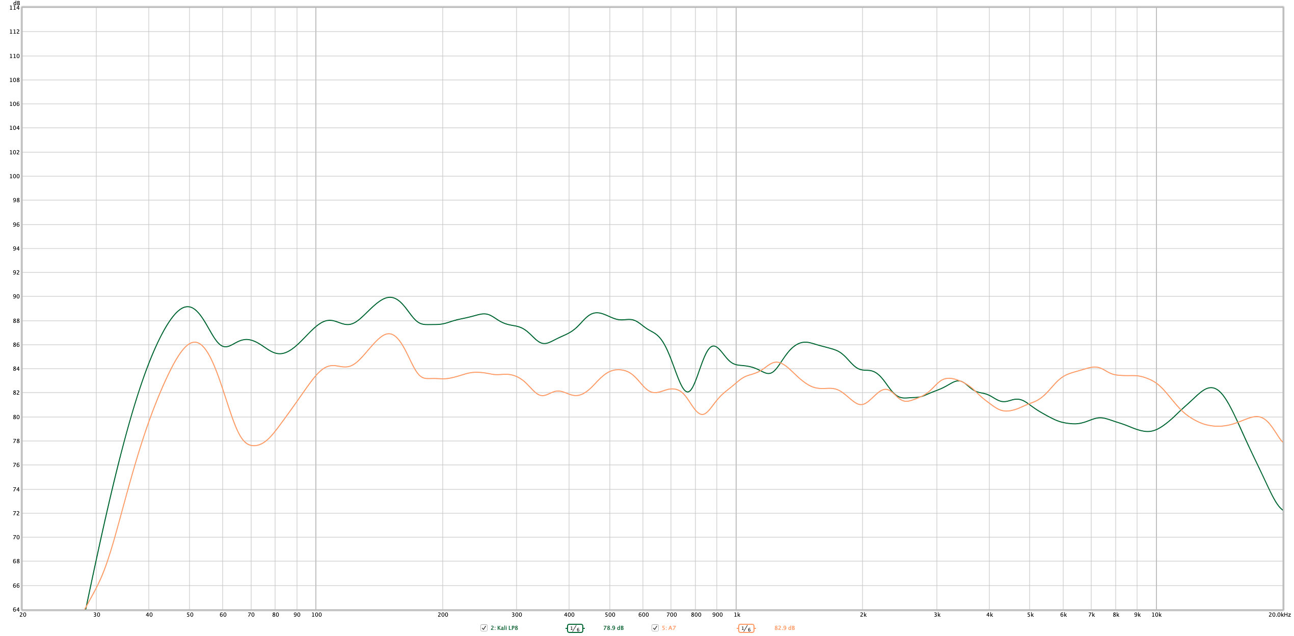Anyway, it's fairly clear that the Kali Audio LP8s are quite a bit duller than the Adam A7, or that they are designed for a response slope that favors much less high end.