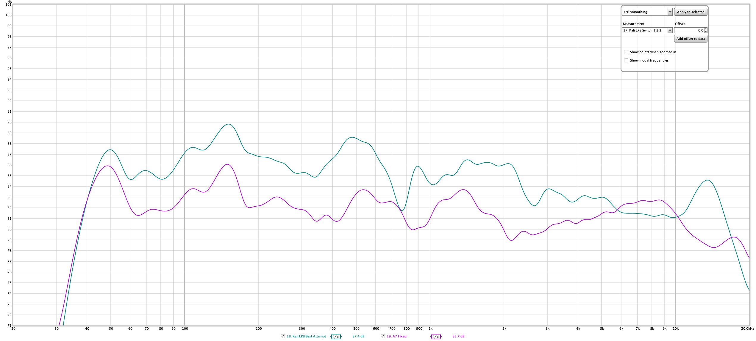 A7's are much flatter by default in my space. (Except, where did that 70hz null come from?? Ugh.)