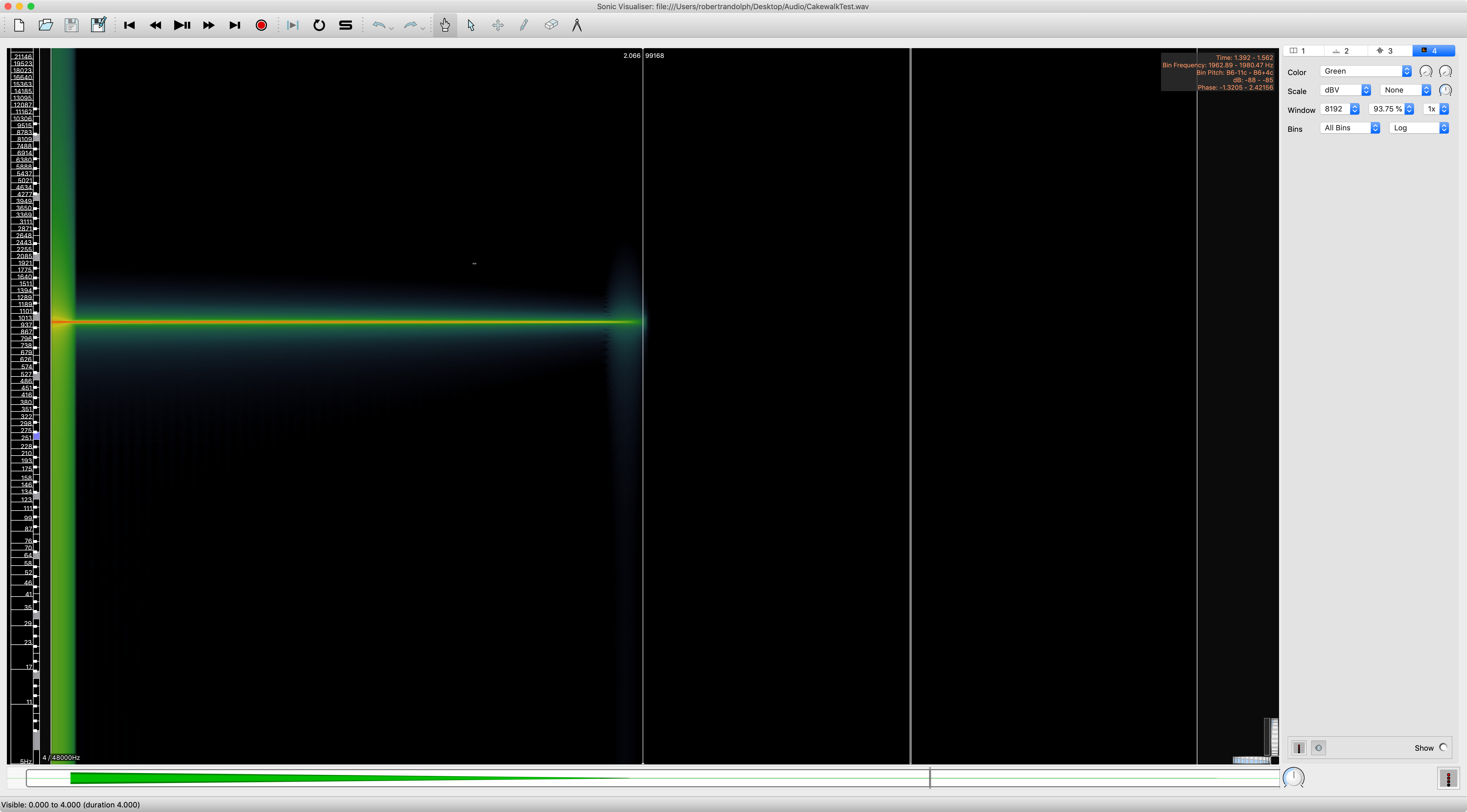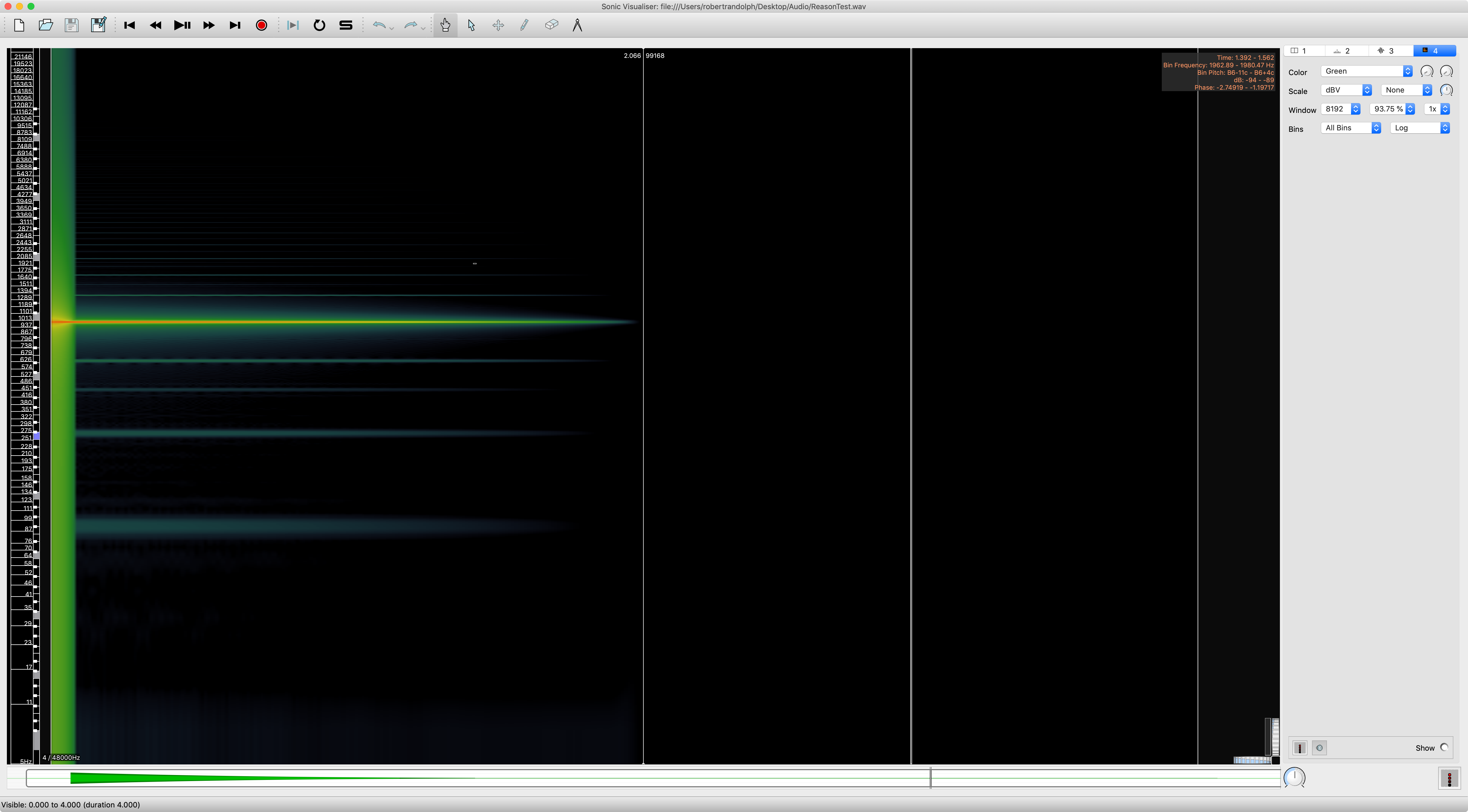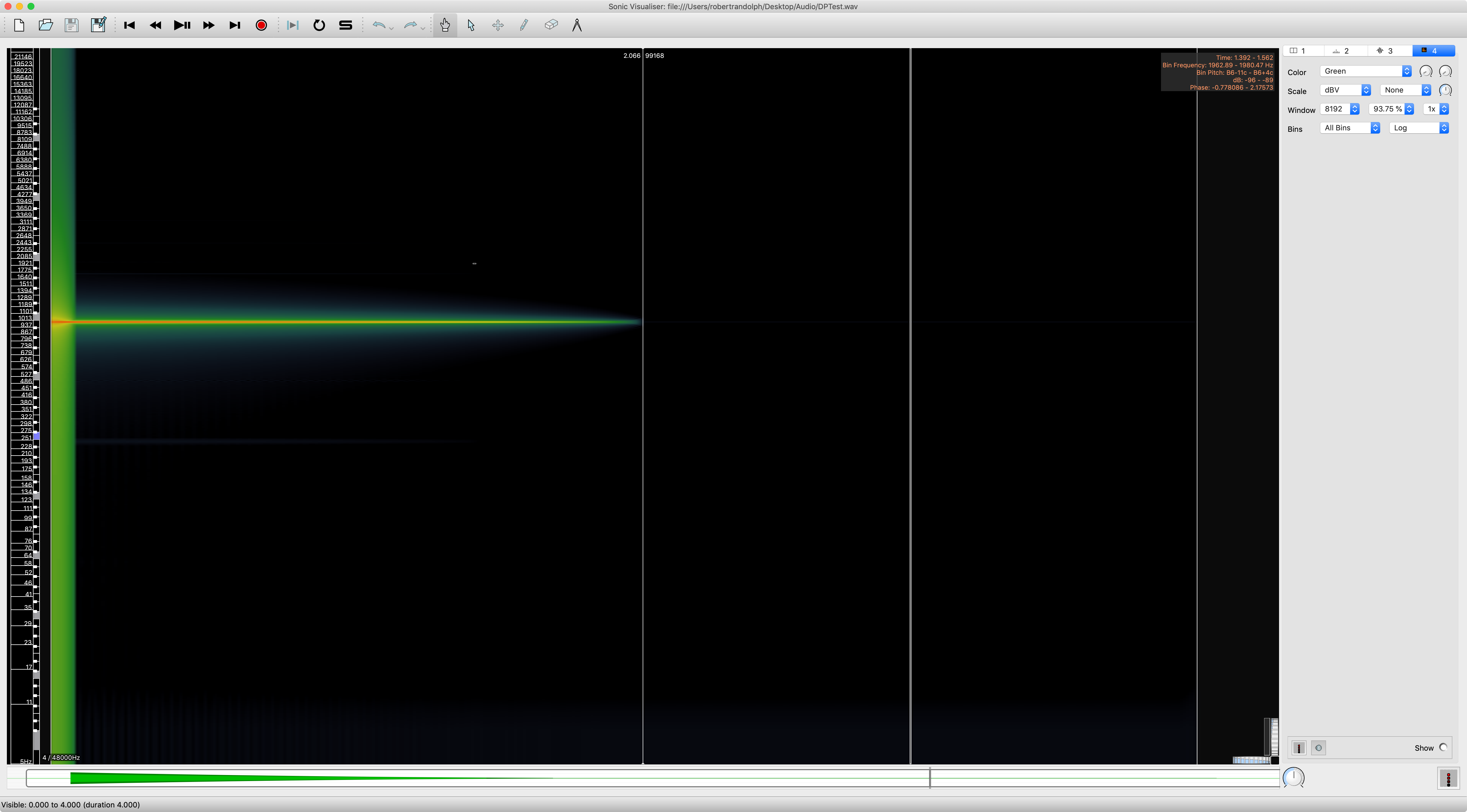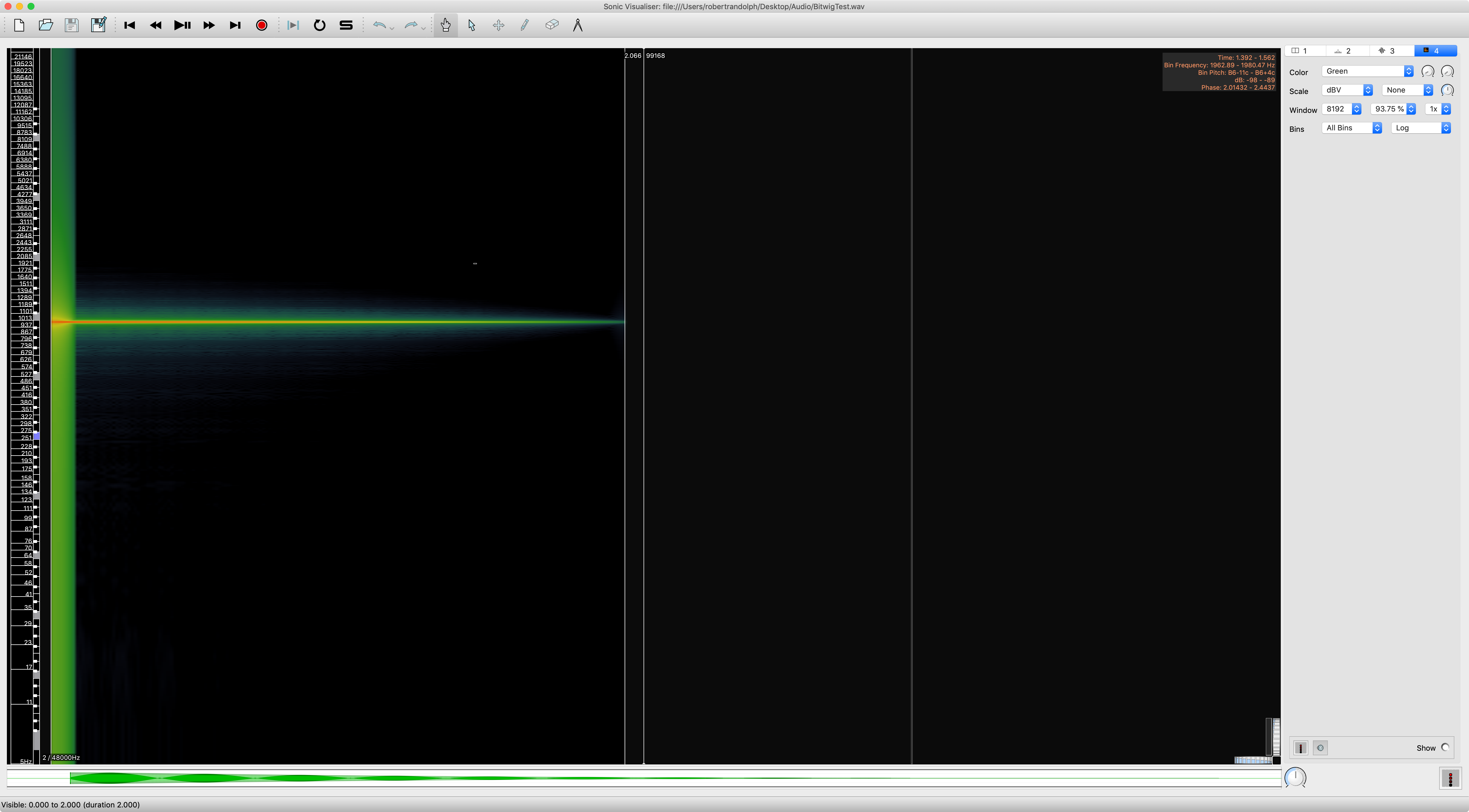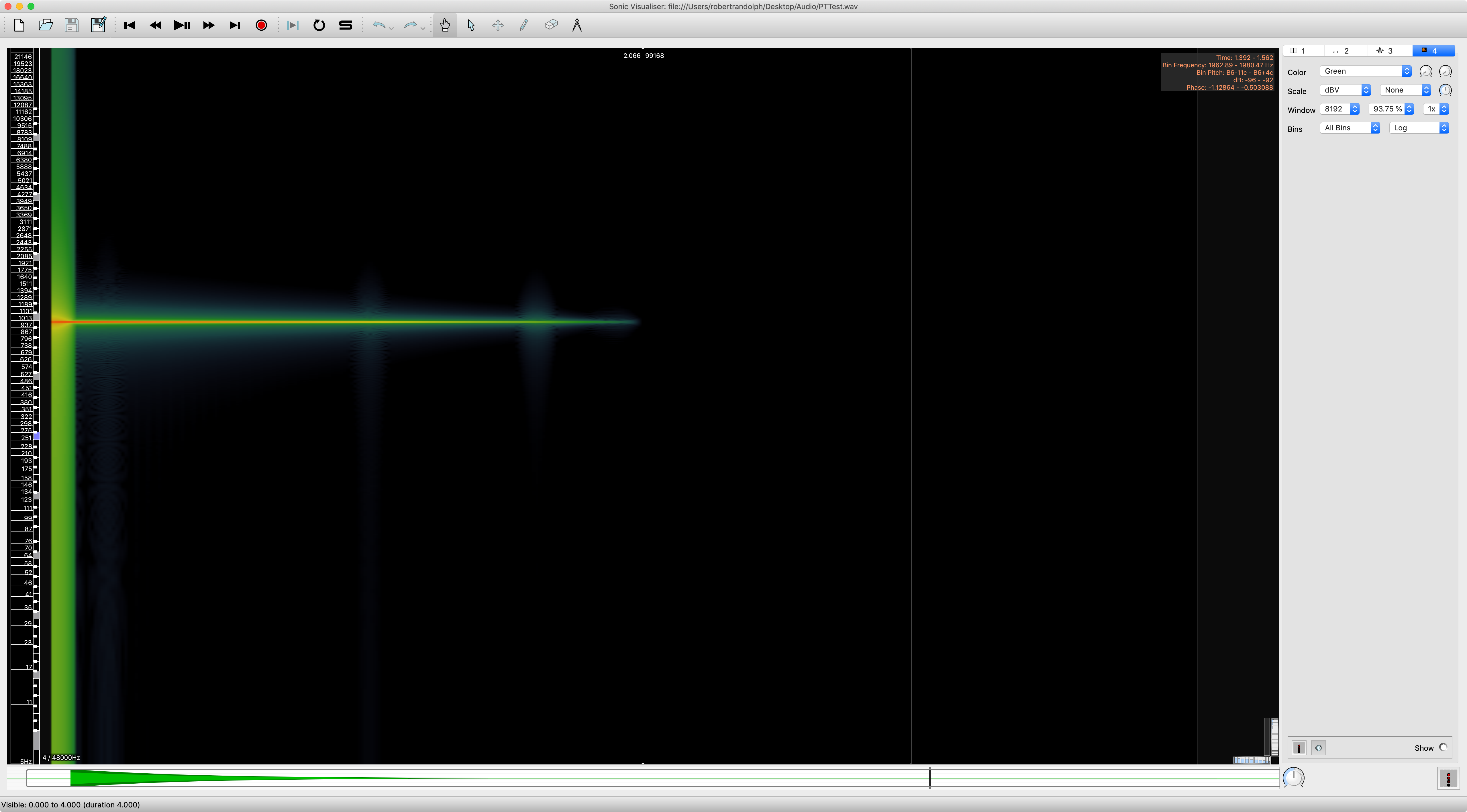 - Overlap doesn't matter (93.75% is important for some other tests though! This gives temporal resolution relative to the FFT size)