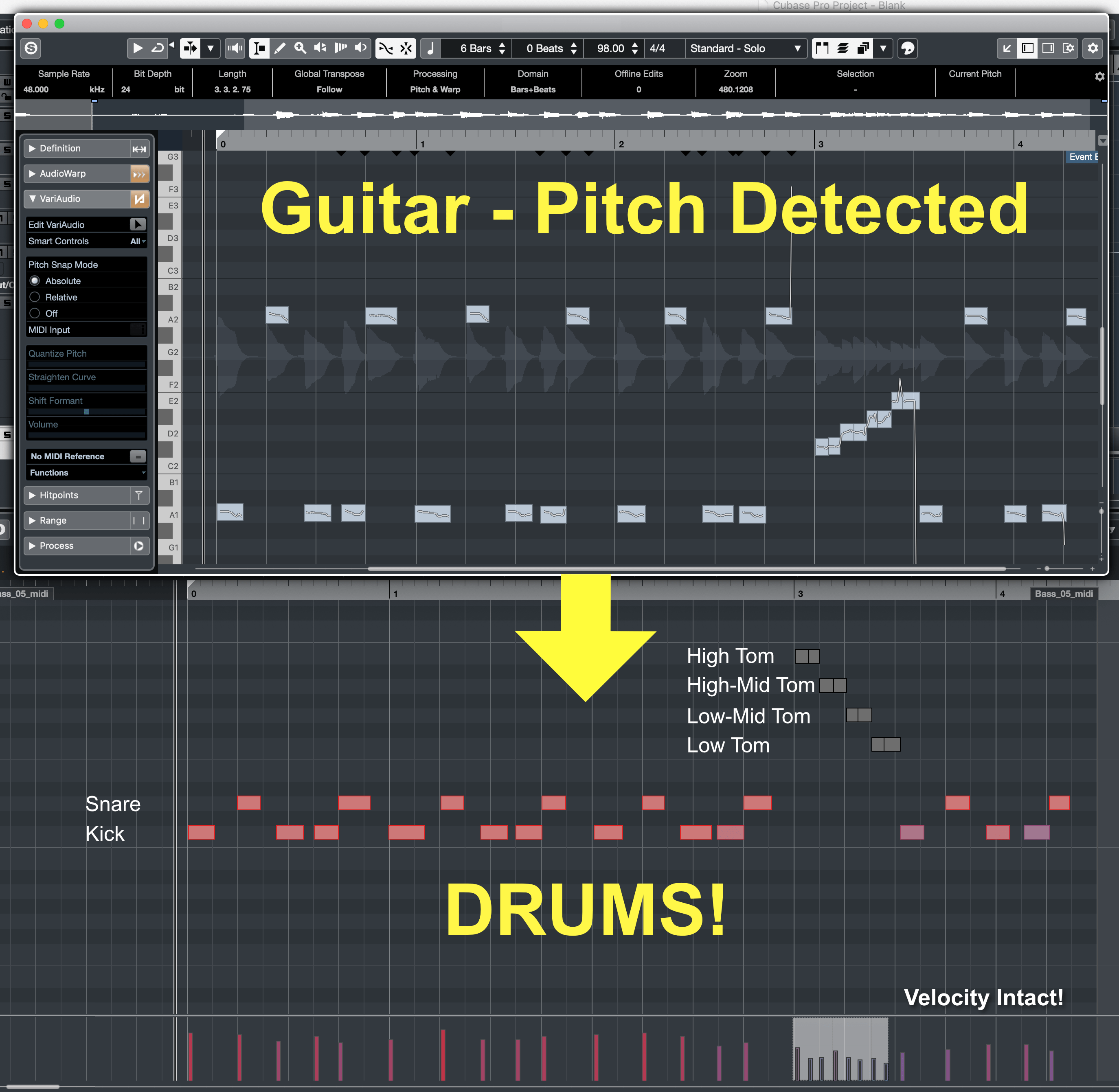 I think that the run of the mill intermediate user probably read the intro and thought of the "Create MIDI from Hitpoints" feature. You can play any notes that you want and Cubase will detect the onsets of the notes. The note onsets can be turned into MIDI notes with their onsets matching the hitpoints.