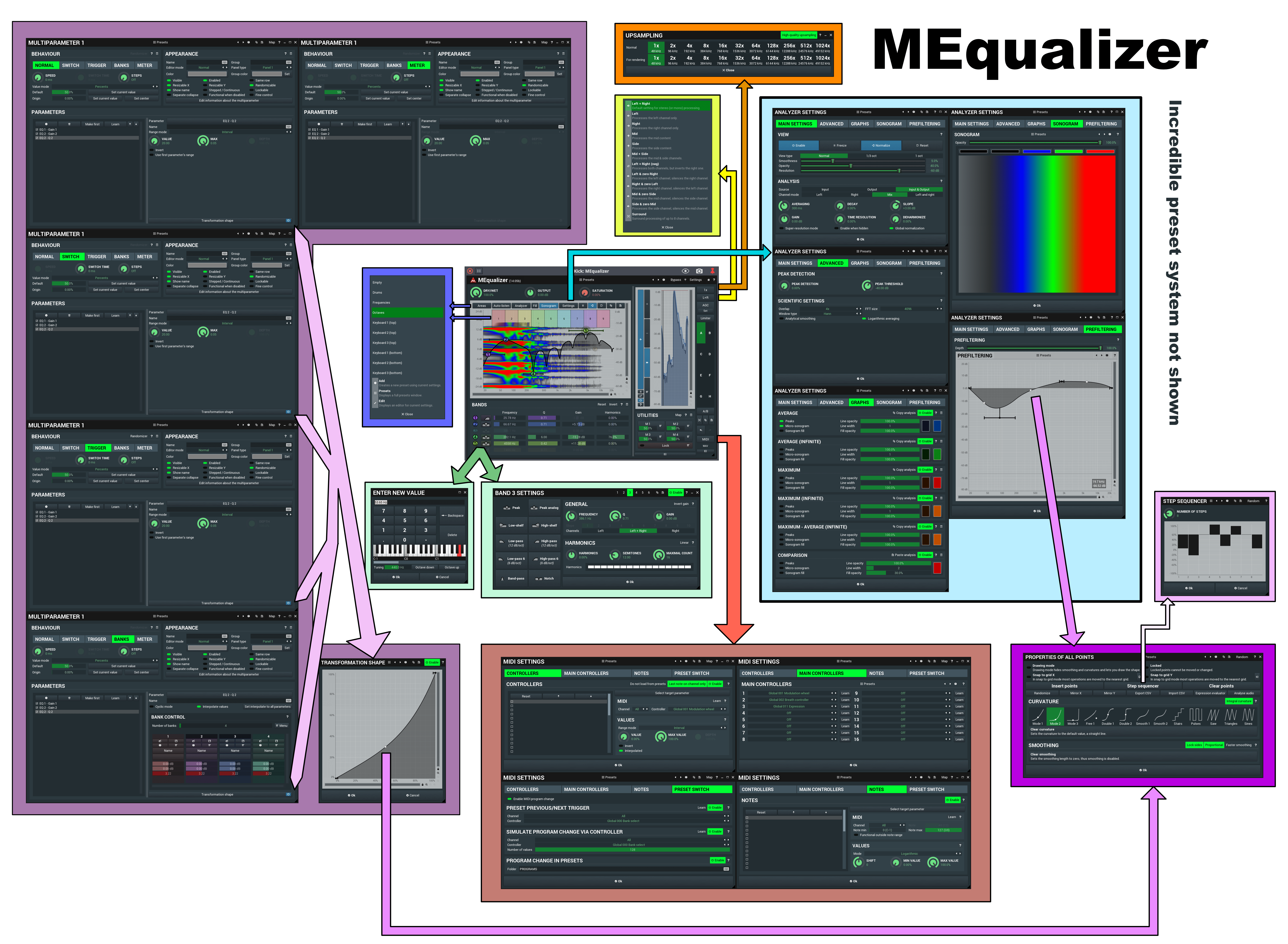 That's not even everything. You'll have to click the large image above to see more, and I'm still missing at least 2 major features (that are common to all Melda plugins).
