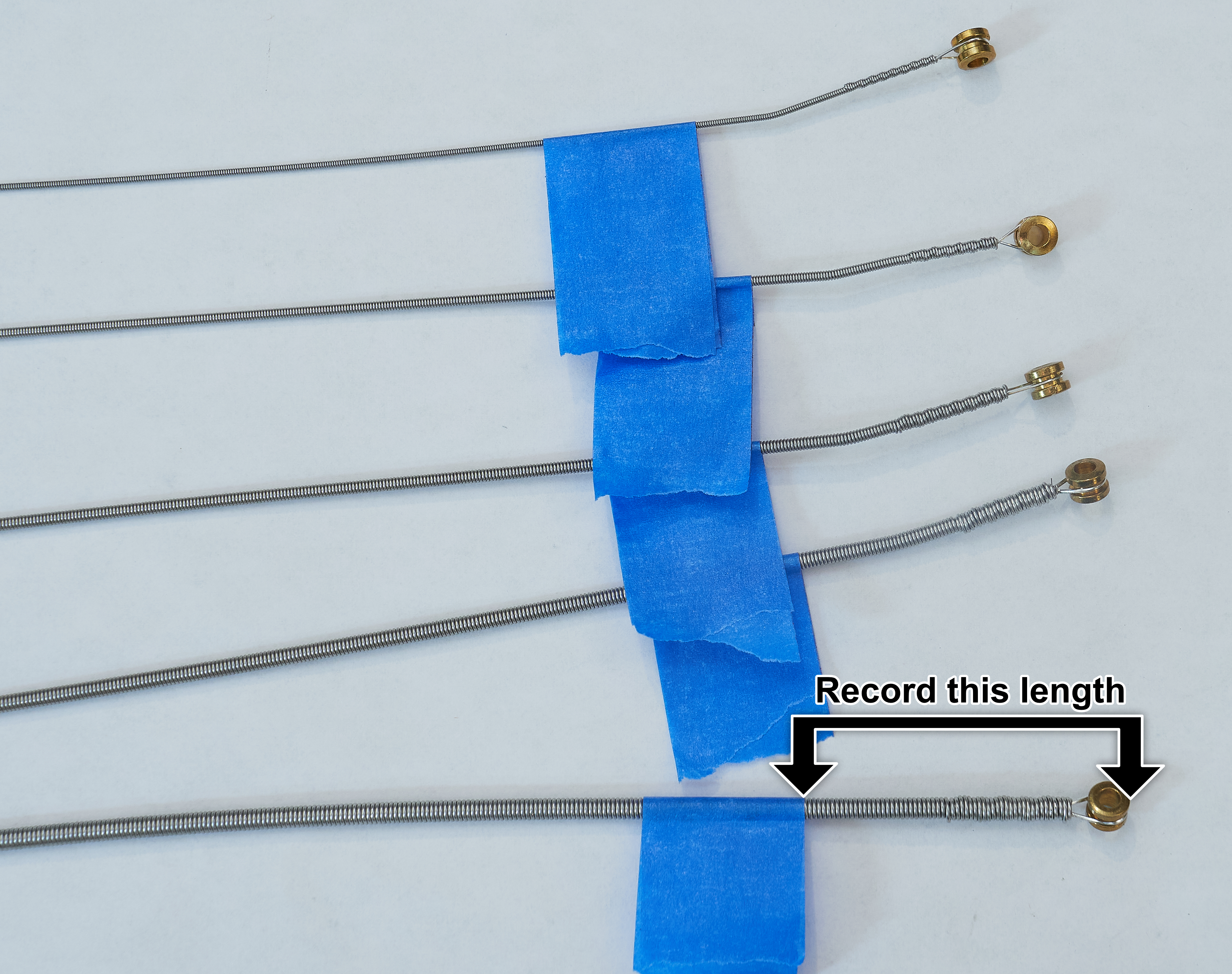 - Mark existing tapered string 1/4" or 6mm from the bridge.
