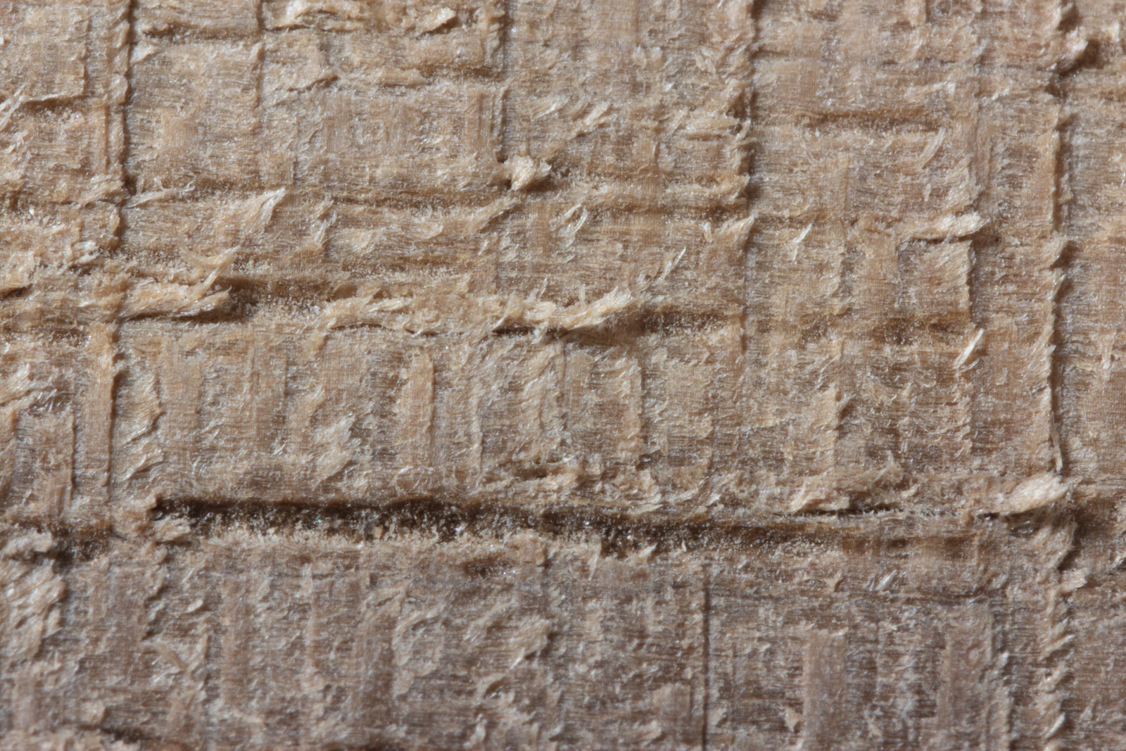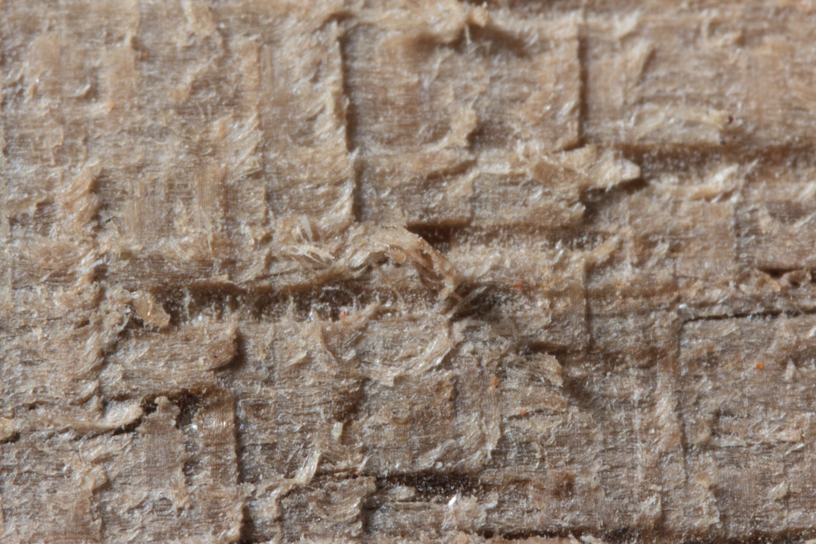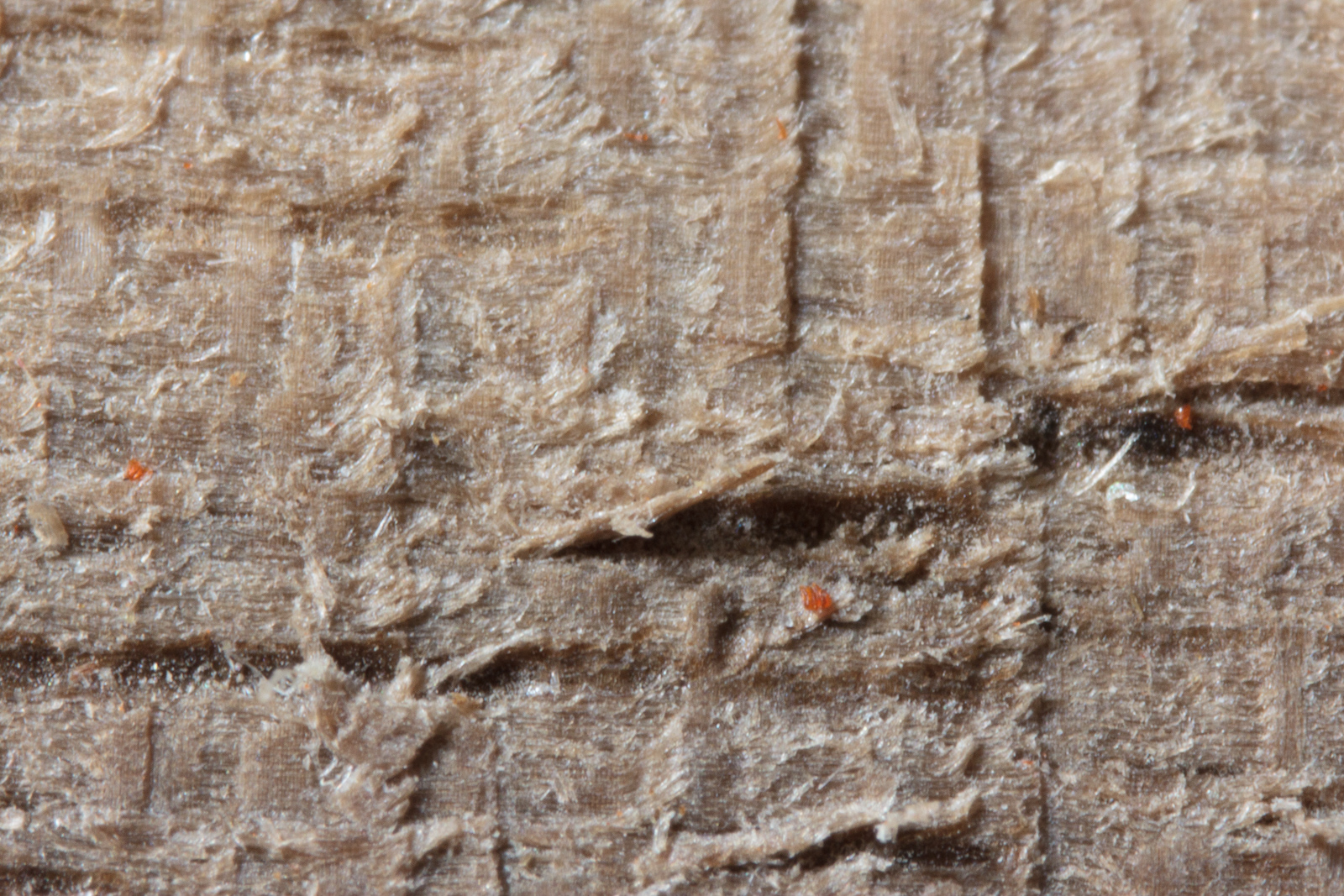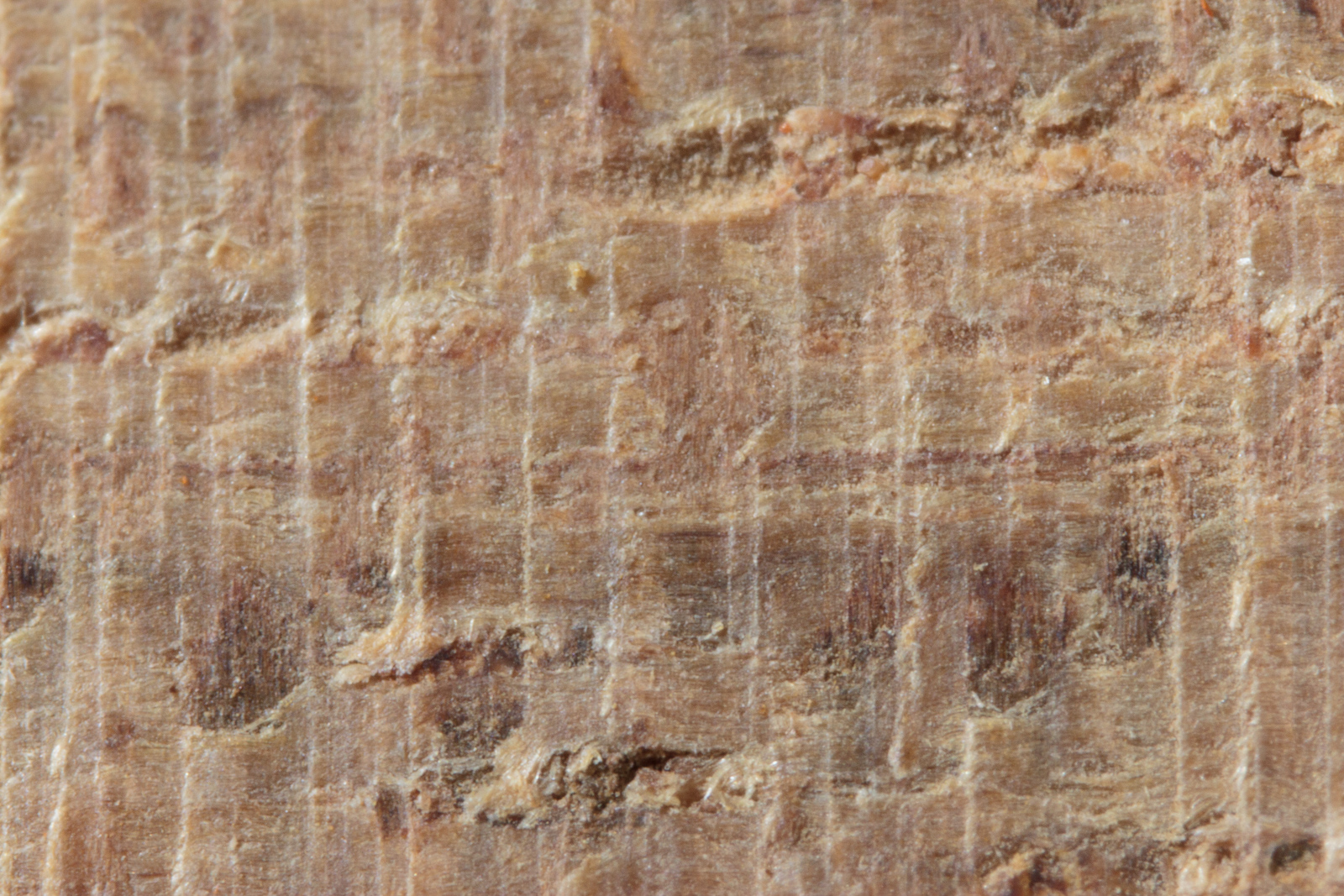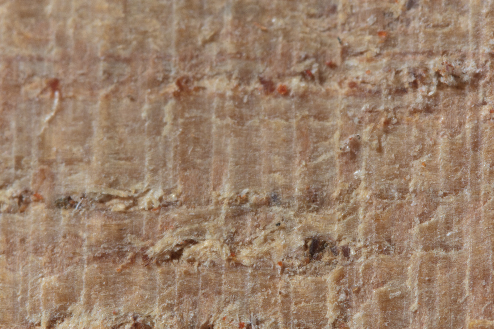 This is the example where you can see where the tear out in all of the previous examples stems from. There's vessels in the wood that are partially filled. Other cutting methods remove this filling (of what I assume is dried sap and/or resin). The 66° plane blade cuts very smoothly and leaves these vessel's contents mostly intact.