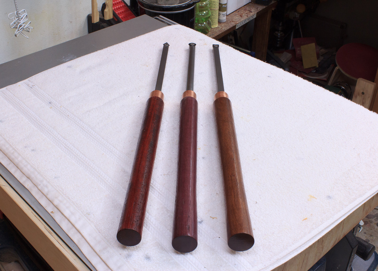 I assigned my rougher to the heaviest handle, the smoother to the middle-weight, and the detailer to the lightweight. Not really a big deal since they were 5 grams apart from each other! Fanastic tools. Total cost of $110. That is less than the cost of a single equivalent Easy Wood Tool. I don't think you can beat that, and they don't come in fancy colour coded woods!