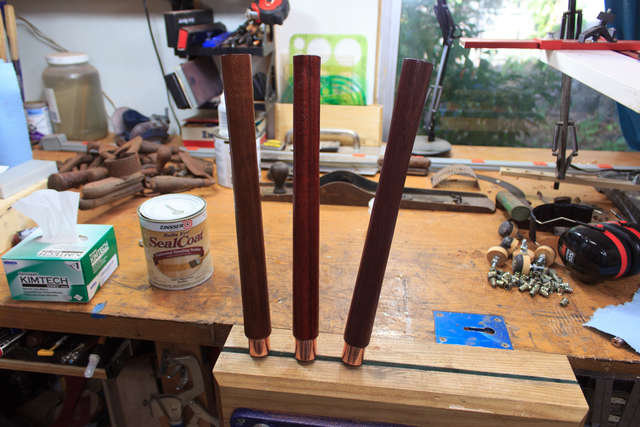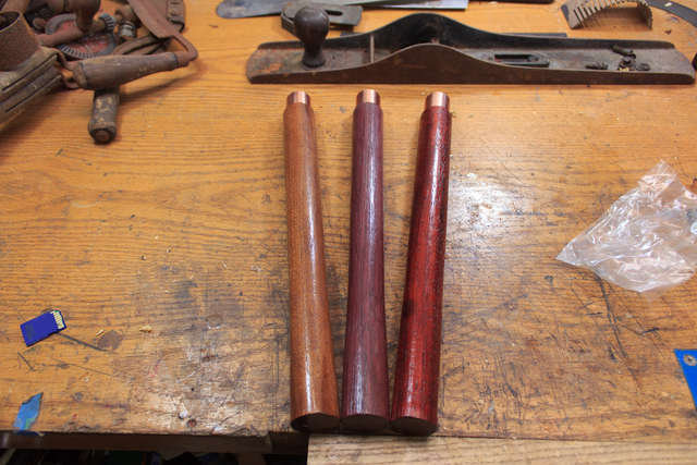 Now all you need to do is turn some handles. How you do this is up to you. Mine have about a 3/8" slope down to 5" from the butt.