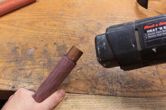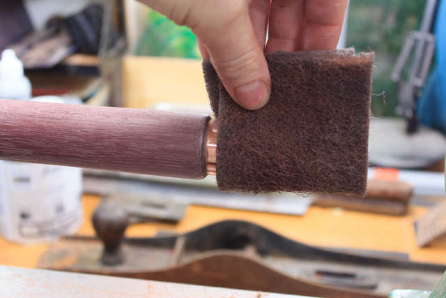 Using some maroon scotchbrite from enco, I both am sanding and heating up the ferrule.