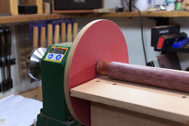 Here I use my previously blogged about disc sander to square up the ferrules that I glued on.
