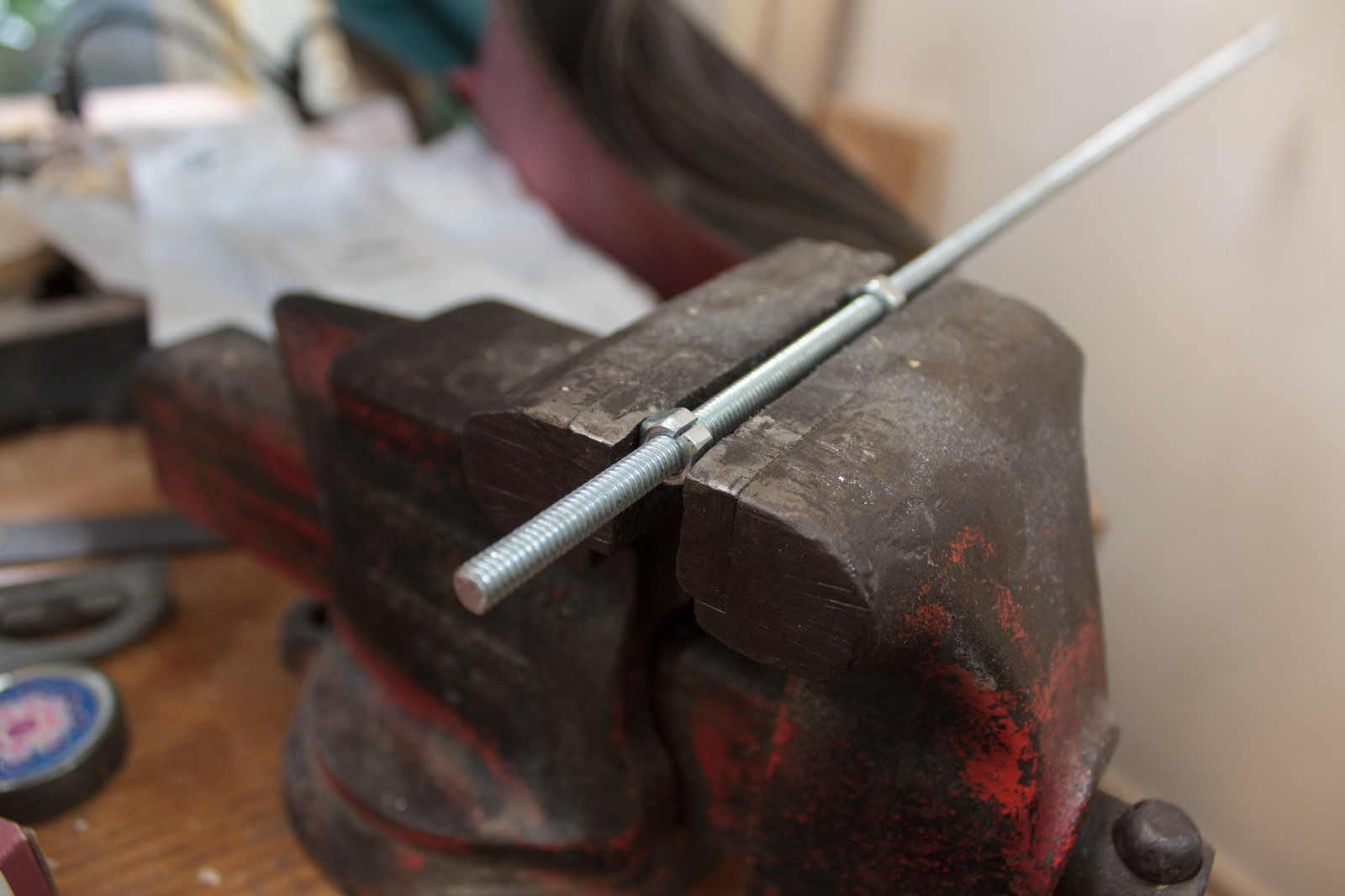 Step 1. Put a nut in a vise that matches your threaded rod's specs.