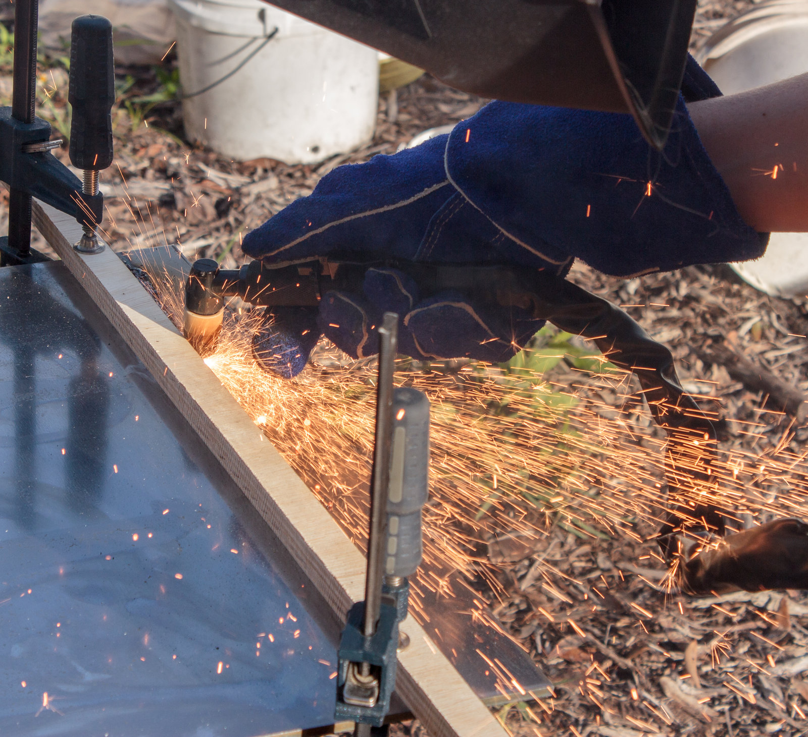 Plasma cutting can leave somewhat of a rough edge, but all the edges need to be cleaned up anyway. An angle grinder makes quick work of this.