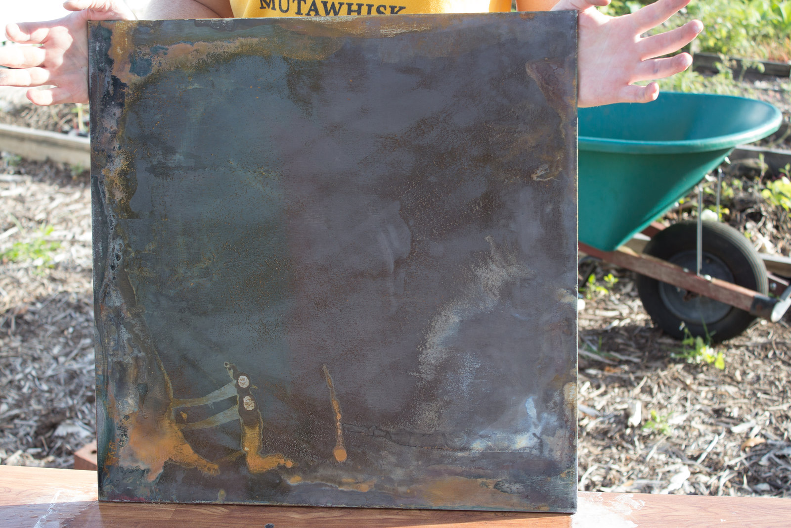 Just a chunk of some mild steel. This was about 20"x20"x0.25". It was purchased at the local steel yard very cheaply.