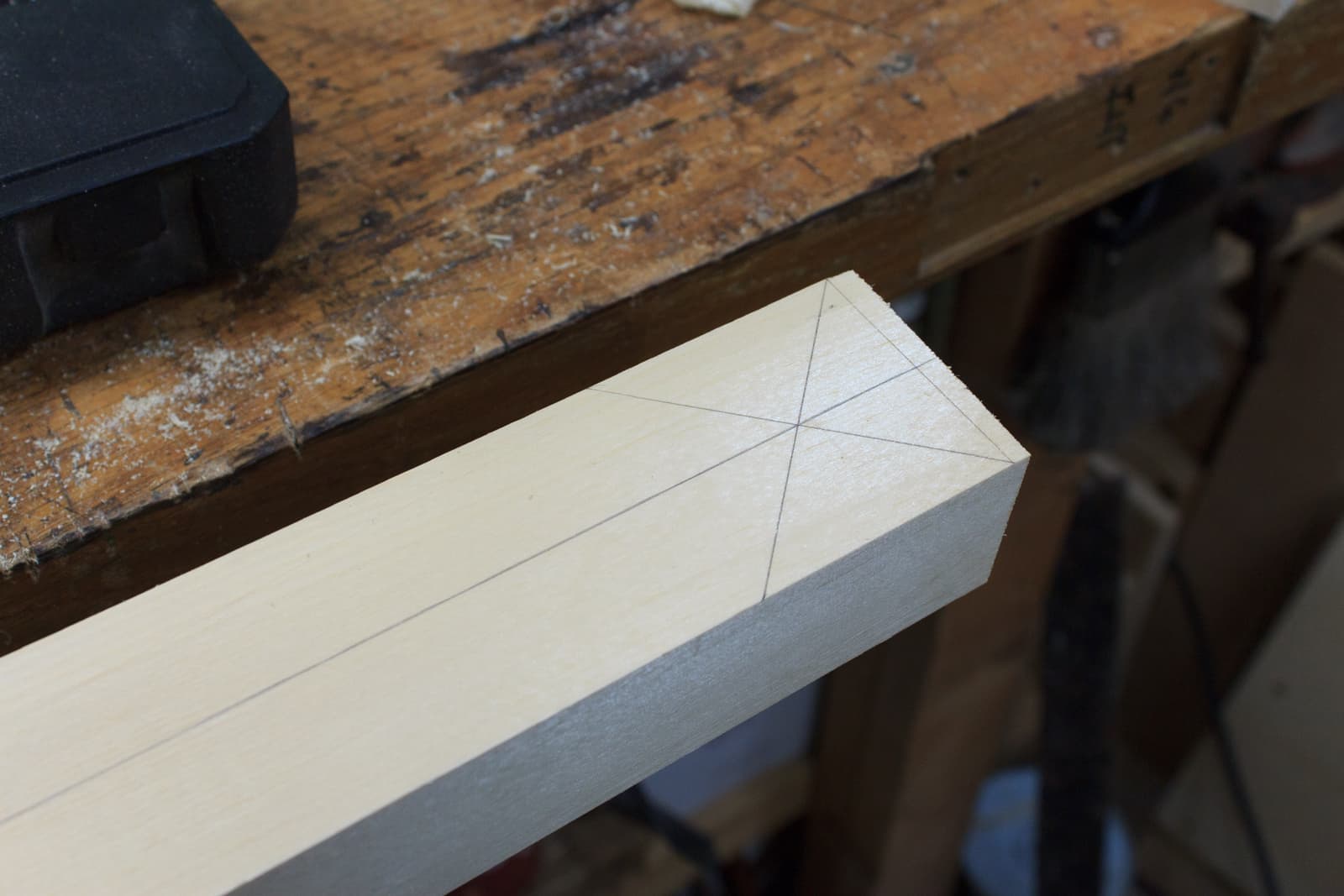 I then draw an X with the legs meeting the mark and the edge of the board.