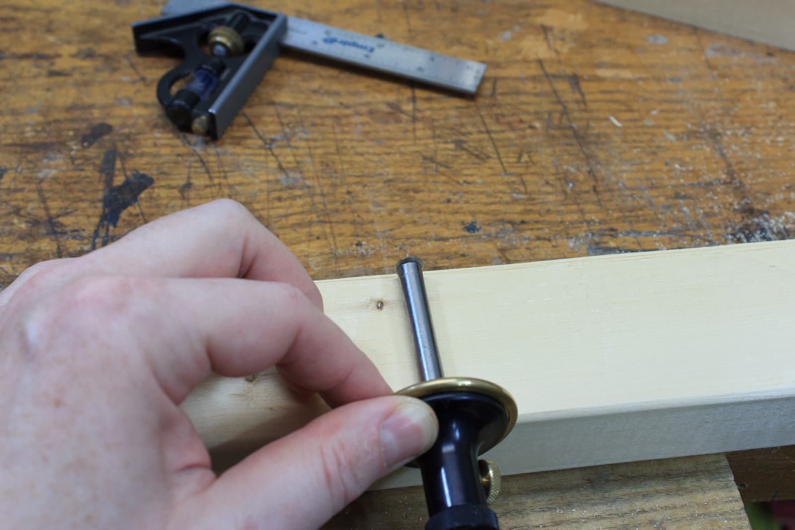 I then plane to this line. Since the marking gauge cuts a light score line, you can actually see a telltale thin shaving of wood come off when you hit the mark.